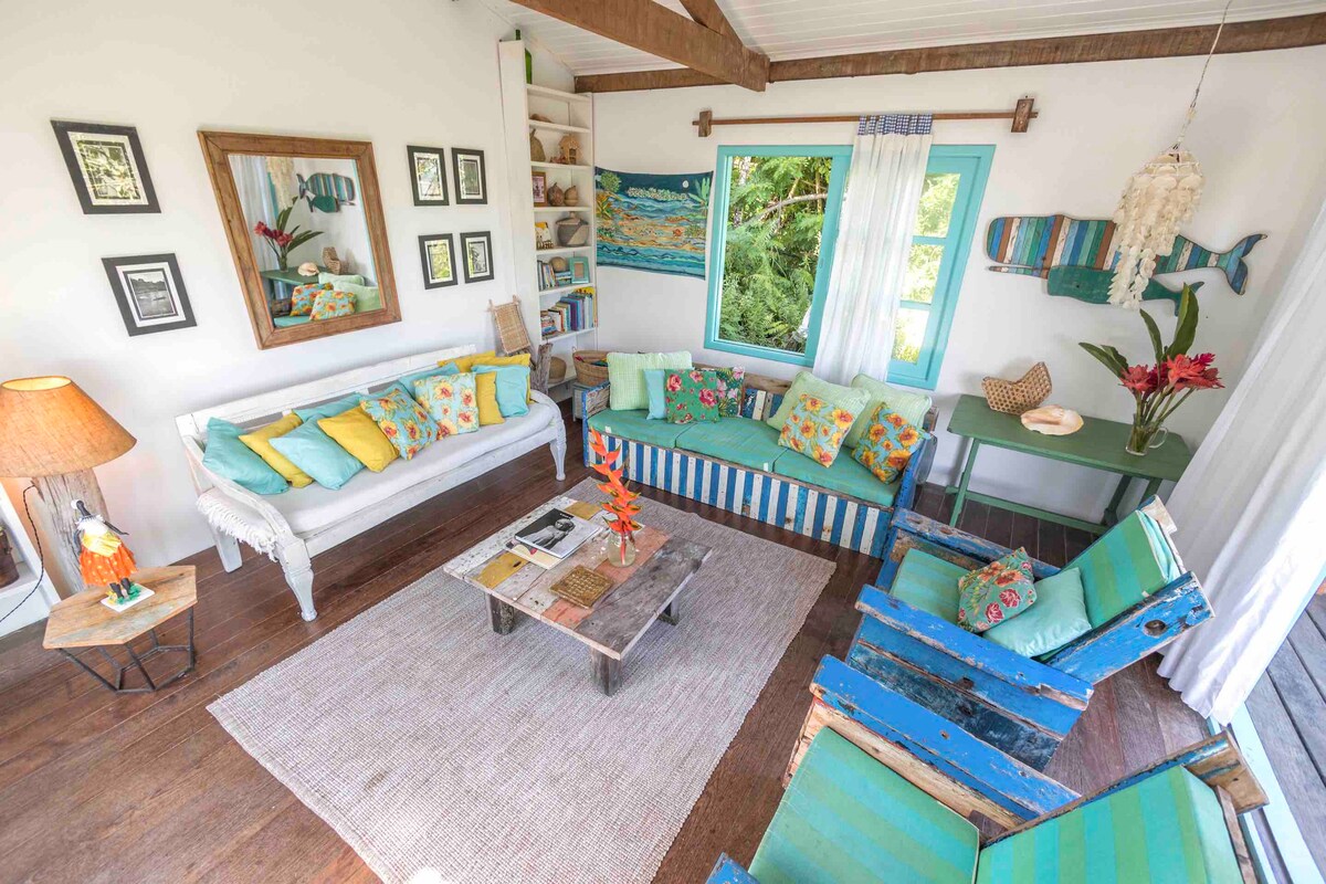 charmerende træ med balkoner og lille bibliotek med bøger om natur og liv. Bredt landskab til havet fra toppen af et bjerg 100 meter til havets overflade. Fred og sikkerhed, 2 km fra den venlige landsby Serra Grande. Flygtning af dyreliv: små primater, dovendyr, peccaries og anteatere. Region for traditionelle landmænd med kakao, cassava, kokos og fjerkræ. surfingudstyr, kanosejlads, cykling.