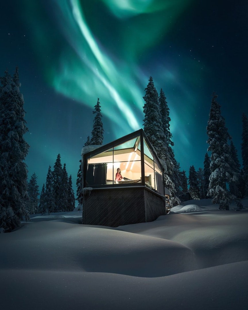 Vores hus er økologisk bygget af finsk fyrretræ. Dit værelse ligger på øverste etage og nås via trappen. Du deler galleri og toilet med et andet værelse. Du deler køkken, stue og brusebad med os. Saunaen er inkluderet. Vores hus ligger i skoven, 2 km fra hovedvejen ved en idyllisk sø. Lufthavnen kan nås på 20 minutter i bil. (Lufthavnstransport efter aftale og mod tillægsgebyr.) Indkøbsmuligheder og restauranter i Ivalo (7 km).