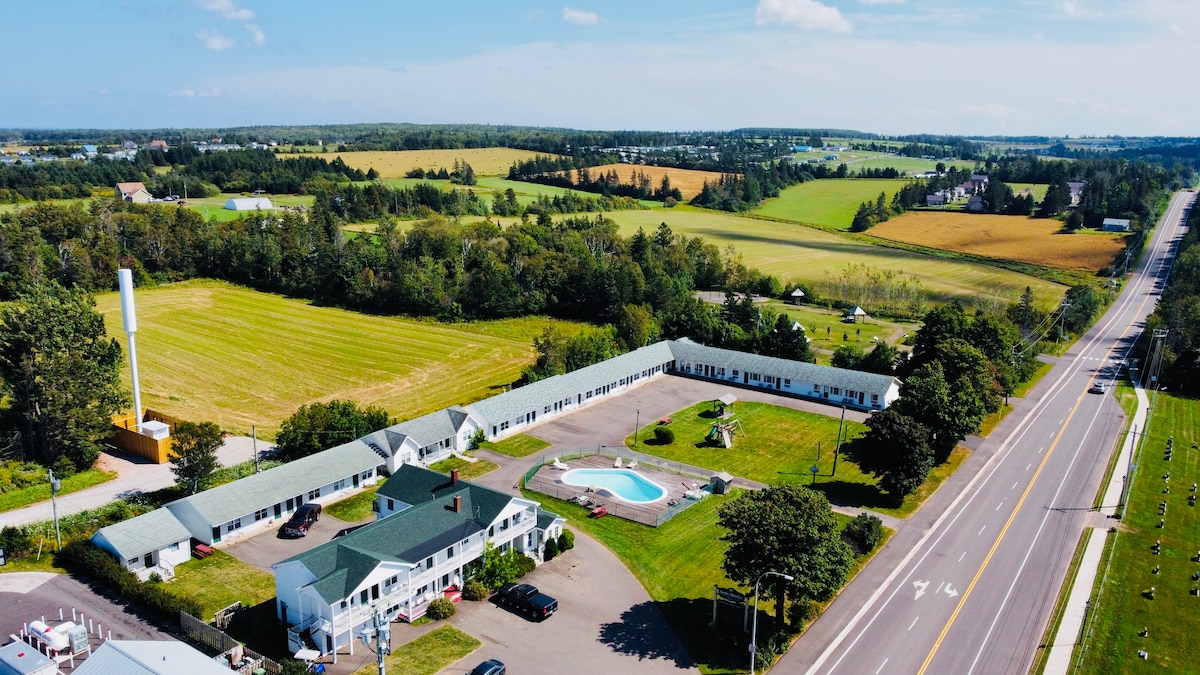 Anne Shirley Motel & Cottages ligger lige ved siden af L.M. Montgomerys Cavendish National Historic Site, Cavendish Community Park, Cavendish Post Office og Cavendish Church. Hun er i centrum af Cavendish, har gåafstand til de fleste attraktioner steder, restauranter, supermarkeder, CBMF, og Cavendish strand. Et-værelses kingsize-lejlighed: En kingsize-seng i soveværelset, en dobbelt størrelse pull-out sofa i stuen, fuldt udstyret køkken, badeværelse, fladskærms-tv, A/C, varmelegeme, skrivebord, stole, telefon.
