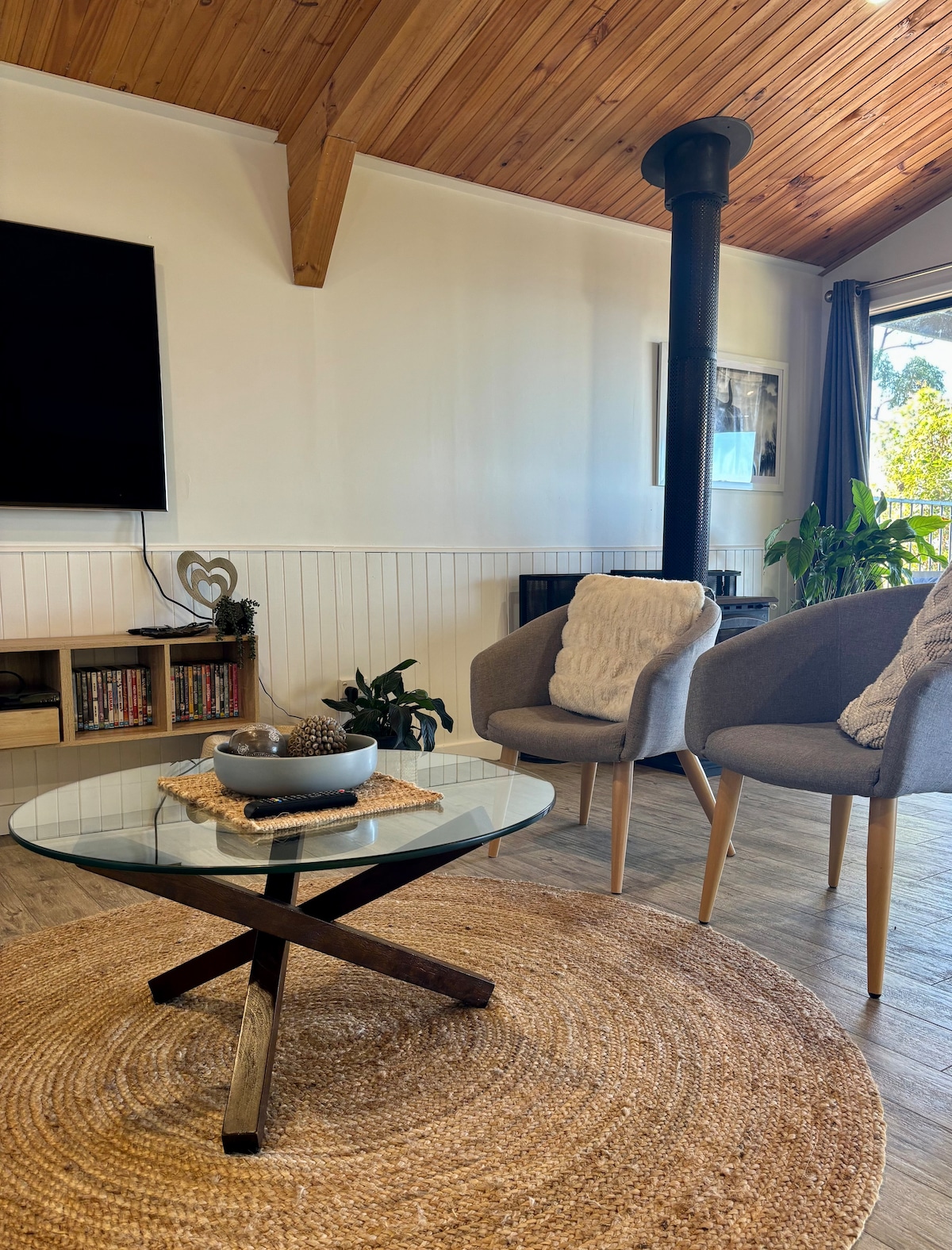 Tag en pause, og slap af i denne fredelige oase. May's er en af to fuldt selvstændige lejligheder i denne bygning. Hver lejlighed har sin egen indgang, og du kan nyde dit eksklusive udendørs stenbad, slappe af foran den indendørs pejs, kæle på kingsize-sengen eller slappe af i hængekøjen. Denne smukke ejendom i bushland har adgang til Moreton Bay ved højvande, ligger 10 minutters kørsel fra Straddies strande og 15 minutter fra Brown Lake. Det føles, som om du er i en anden verden.