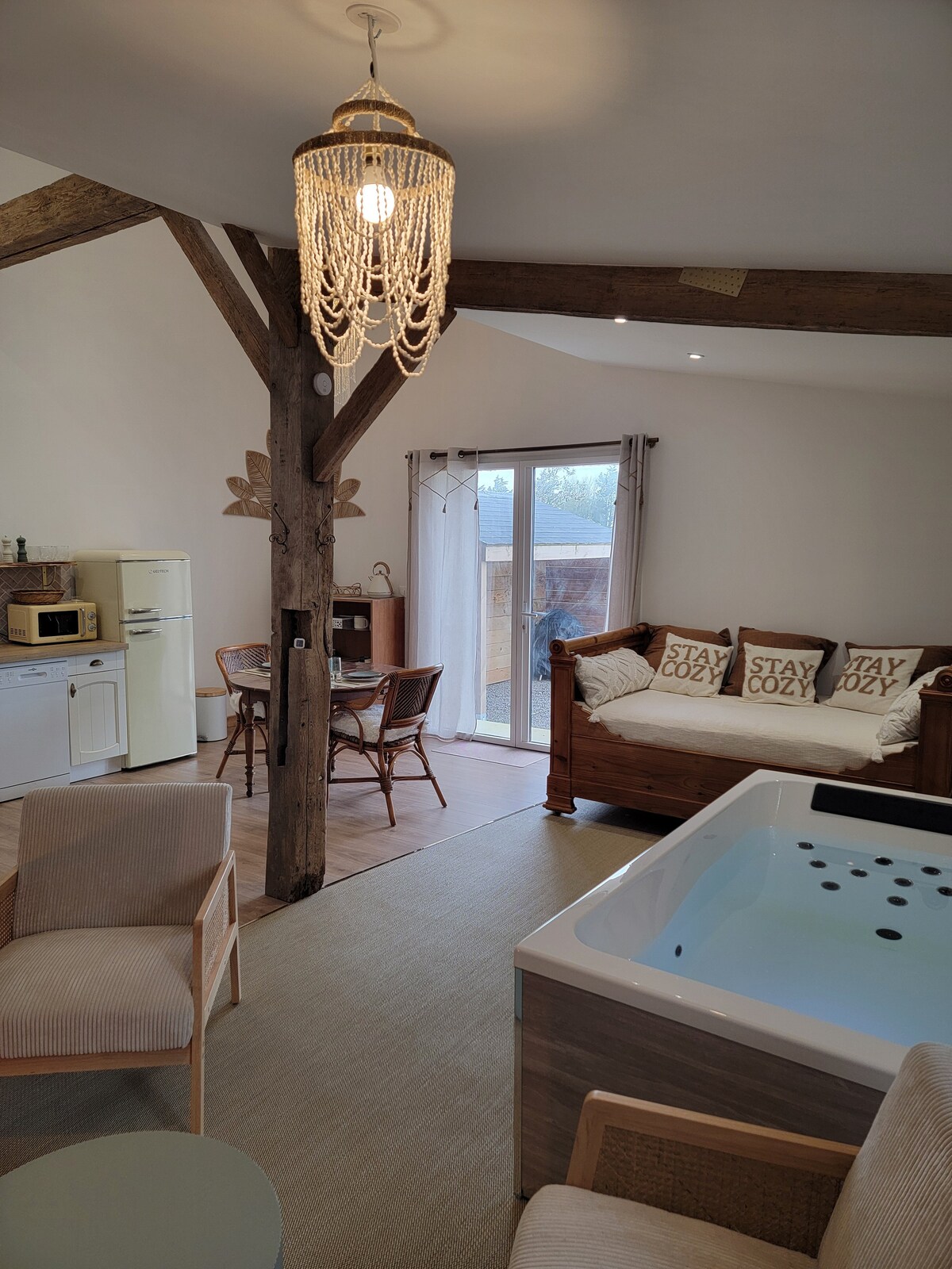 Kom og slap af på Gite le kulmino. Fordyb dig i en fortryllende pause i hjertet af Notre Dame de Monts-marsken. Denne tidligere stenhave, der er renoveret med charme, kombinerer autenticitet og moderne komfort for et uforglemmeligt romantisk ophold. I en bohemeagtig og beroligende atmosfære kan du nyde en 2-personers boblebad i stuen, et fuldt udstyret køkken, et hyggeligt soveværelse og et smart-tv, som du kan se, mens du slapper af i dit boblebad.