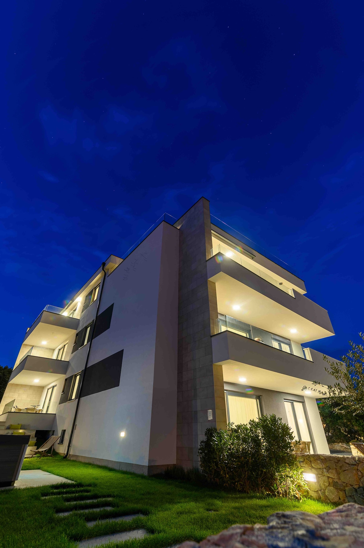 Lejligheder Bella Sky er beliggende i Primorska ulica 32, i byen Novalja, på øen Pag, Kroatien. Lejlighederne ligger i nærheden af centrum og ca. 5 km fra Zrće-stranden, hvor berømte klubber bor. Der er gratis parkering og pool foran huset. Bagi er der tre grillfester med udendørs spiseområde. Stranden ligger 30 meter fra huset. Ekstra service: sikkerhed, døgnåben reception, vaskeri og rengøring.