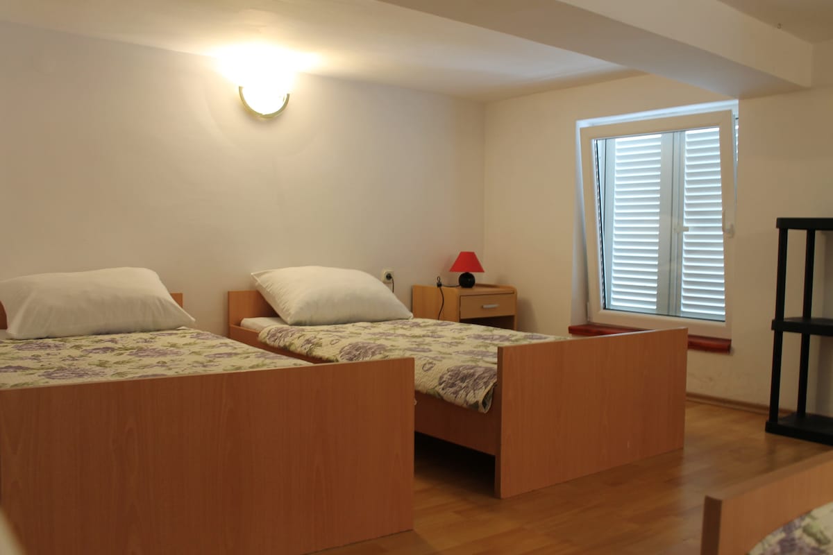 Smukt 130 år gammelt stenhus i Bribir fuldstændig renoveret med: - Altan, terrasse og have. - Soveværelse med dobbeltseng og sovesofa - Soveværelse med 2 enkeltsenge (kan sættes sammen eller adskilles) - Stue med sofa til 2 og stort, fuldt udstyret køkken - Et badeværelse og et udendørs brusebad i haven - Privat parkering