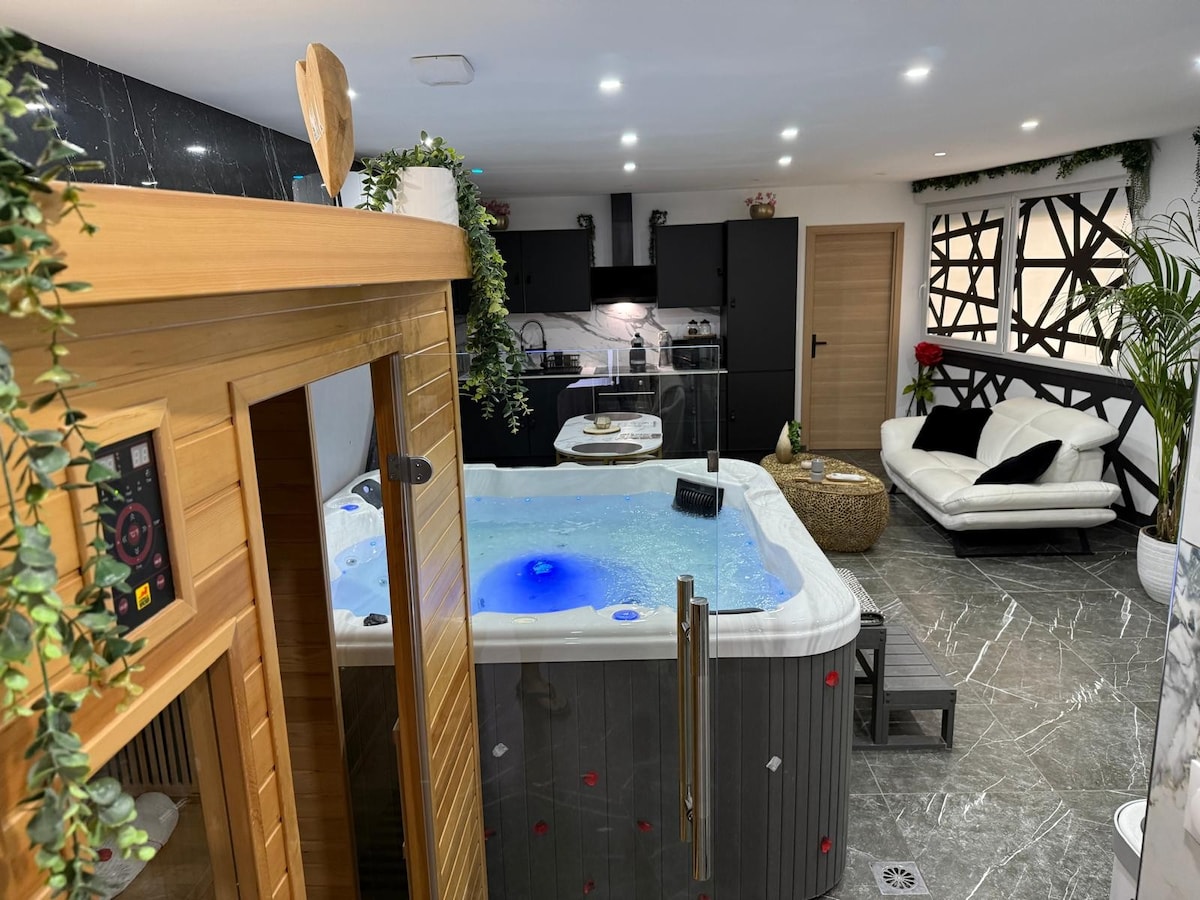 Leder du efter et ekstraordinært sted med en 100 % privat pool opvarmet til 30 grader, et spabad og en sauna i nærheden af Lens og 30 minutter fra Lille The house/gite bonica spa offers you a moment of total escape with its exotic, cozy bali style atmosphere. Fra poolen kan du slappe af med videoprojektoren og højttaleren i ejendommen for at lytte til musikken og se dine NETFLIX-SERIER. snap: BONICASPA insta: Bonicaspa2