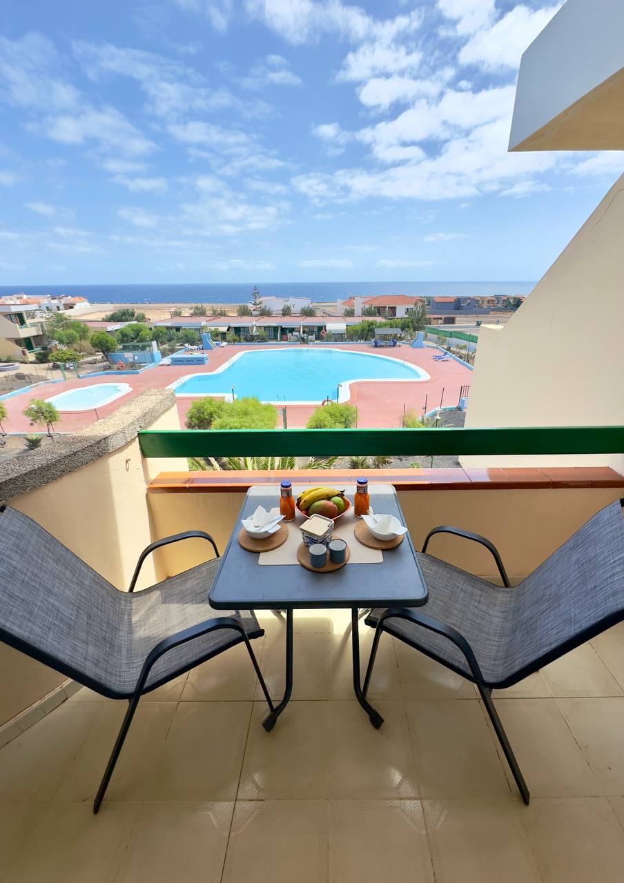 Nyd vores fuldt møblerede lejlighed med havudsigt i hjertet af Fuerteventura, 5 minutters kørsel fra lufthavnen, fælles pool (faktisk under vedligeholdelse indtil december 2025) og privat have til din rådighed! Privat parkering foran huset.