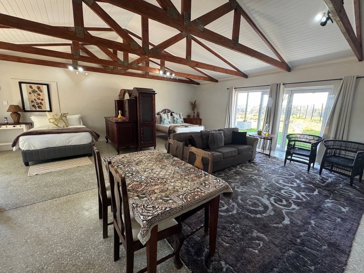 Lovenly open-plan, self-catering . With two cozy double beds, a lovely bathroom with a walk-in shower, and a fully equipped kitchen, everything you need is right here. Surrounded by nature, open skies, and fresh farm air, it’s a warm and welcoming space to relax, unwind, and reconnect. Whether you’re enjoying a quiet morning coffee or watching the sunset after a day of exploring, you’ll feel right at home.