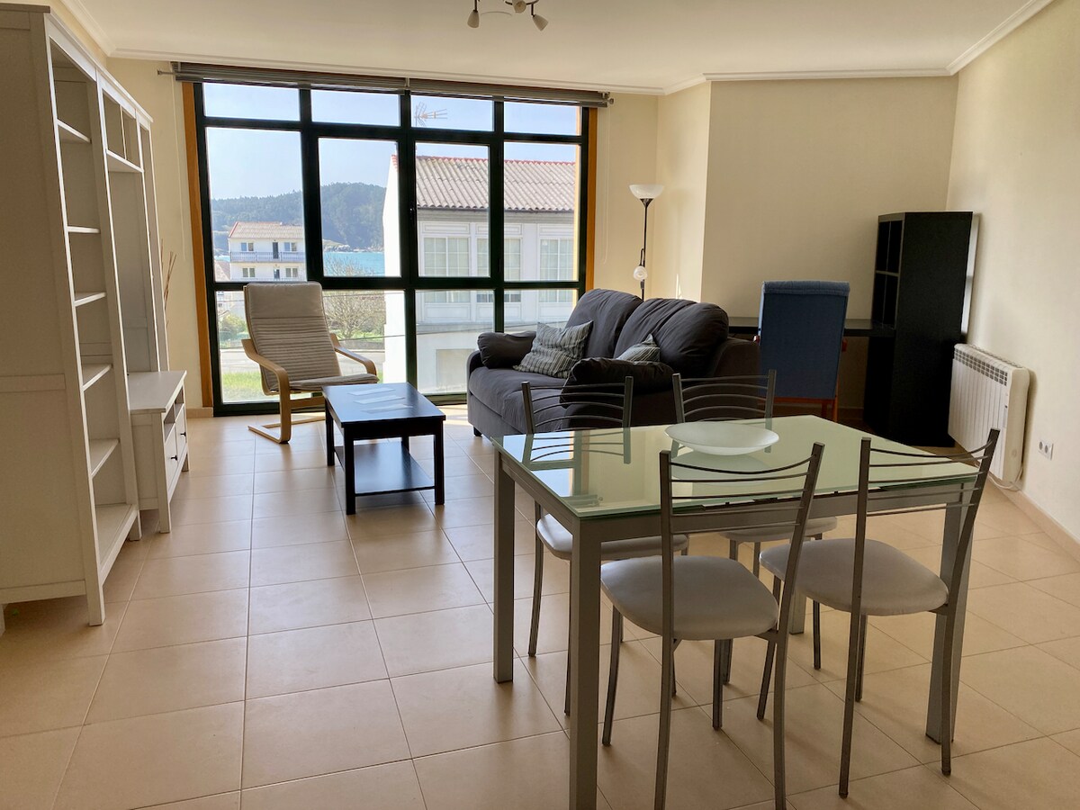 Smuk, helt ny lejlighed i O Porto de Espasante. En lille fiskerby omgivet af natur. Stille og roligt til en ideel ferie i Galicien. 2 minutter fra stranden. 2 soveværelser, en rummelig stue med en sovesofa, et komplet badeværelse og et rum med en vaskemaskine og tørretumbler. Smuk udsigt. Fællesområder med pool og grill. Supermarked og apotek få skridt væk. Byen har flere restauranter og barer, smukke strande og en god atmosfære.
