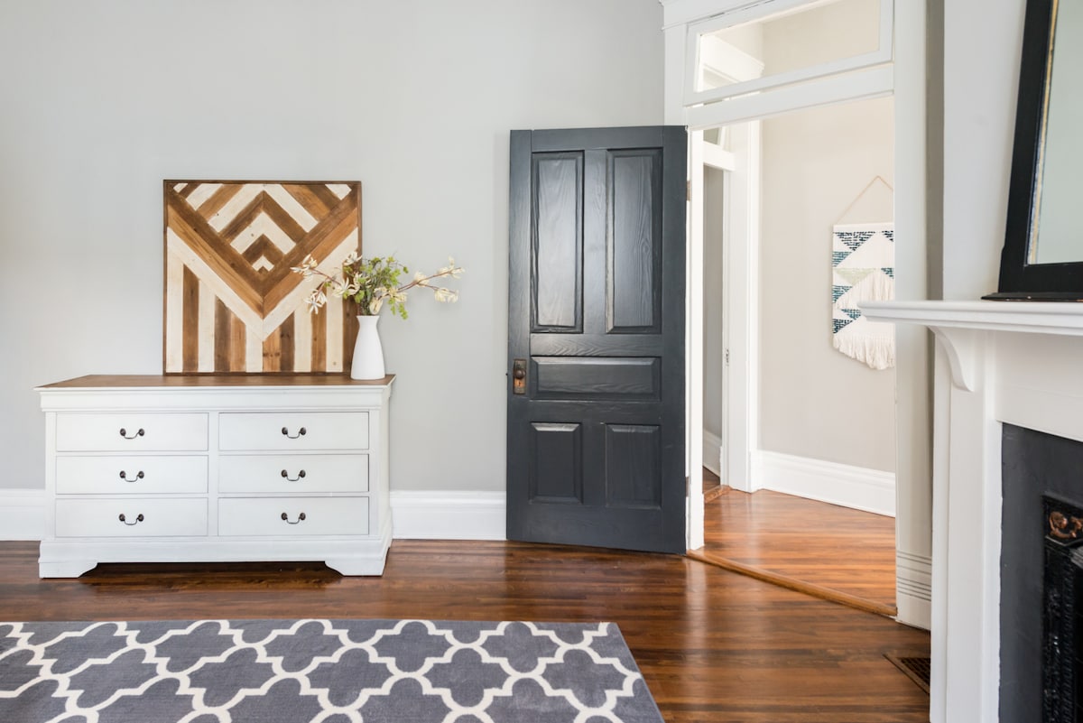 Denne historiske bungalow, der blev renoveret i 2016, ligger få minutter fra centrum og lufthavnen, men gemt væk på en gade med træer i et hot og hurtigt gentrificerende kvarter kaldet Woodbine, en lokal insiderhemmelighed. Mange betragter det som "New East Nashville", og værdierne i dette område er fordoblet i løbet af de sidste par år, da efterspørgslen efter områder tæt på centrum er eksploderet. Nabolaget er en blanding af vintagehuse og ny byggeri og udvikling.
