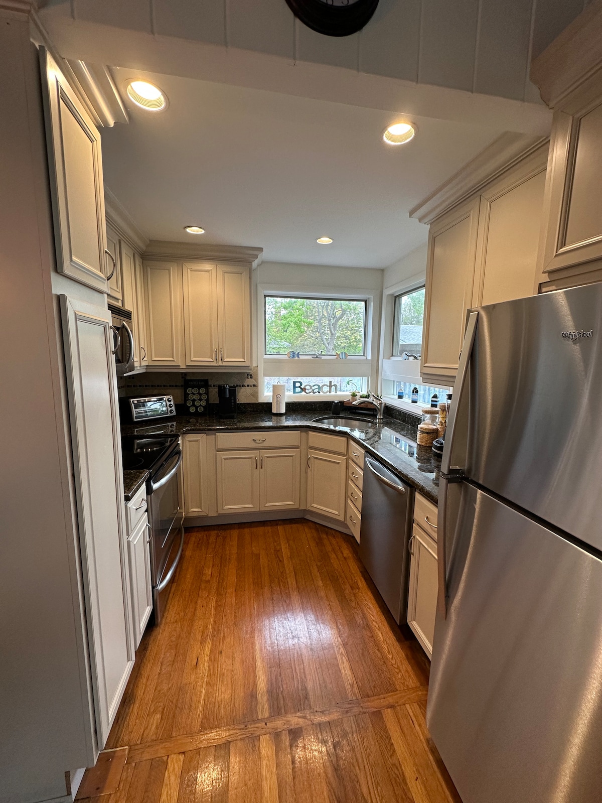 Tæt på færgen. Tæt på alle restauranter/butikker, få skridt fra strande og Great South Bay Sunsets – 3 soveværelser, 1 badeværelse, op til 7 personer. Privat udendørsbruser med varmt/koldt vand, aircondition på alle soveværelser, gasgrill, vaskemaskine, tørretumbler, mikrobølgeovn, komfur, ovn, stort køleskab, opvaskemaskine, kaffemaskine, blender, alt køkkengrej, bestik, lagner, puder, sengetøj osv. inkluderet. Stor udendørs terrasse, handicapvenlig, direkte satellit-tv, film Pkg. NOGLE FÆLLES UDENDØRS OMRÅDER, dvs. tøjvask, adgangsveje
