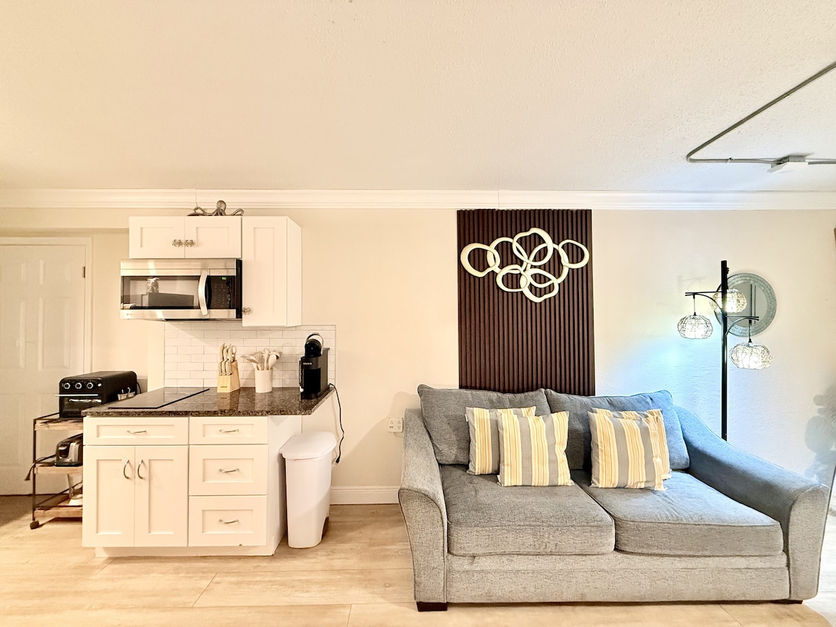 Flygt til vores luksuriøse, nyligt ombyggede og helt nye møblerede 1BR lejlighed beliggende på 13. etage i Ocean Walk Resort, der giver øjeblikkelig adgang til Daytona Beachs ikoniske strandpromenade og strand. Denne lejlighed har en betagende havudsigt fra den private balkon og har et luksuriøst design med bordplader i granit, nye møbler, forfriskende indretning og lokale kunstværker. Udendørs opvarmede pools, doven flod, vandrutsjebane, sprøjtepude, 3 boblebade inkluderet!