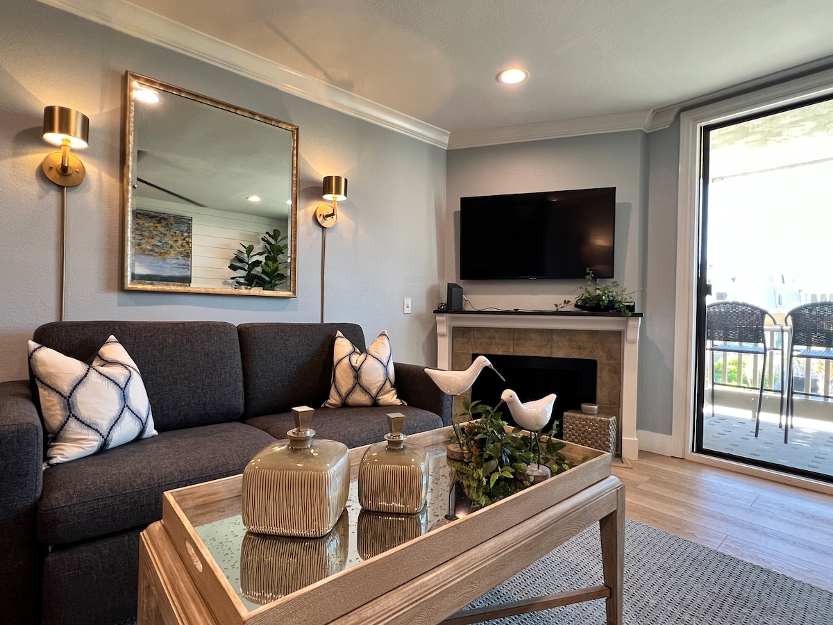 Patio on the Pacific har smuk havudsigt fra stuen, soveværelset og balkonen. På en god dag i Oceanside kan du nyde sejlbådene, der sejler forbi på Stillehavet, fra sofaen! For at slappe af og få ny energi kan du bruge bygningens pools og spaer eller nyde den 5 min. gang til stranden. Nyd at arbejde her med 200 mbps internet og et dedikeret skrivebord i soveværelset. Vores lejlighed er en hjørneenhed på øverste etage (tilgængelig via elevator) i bygning G i North Coast Village.