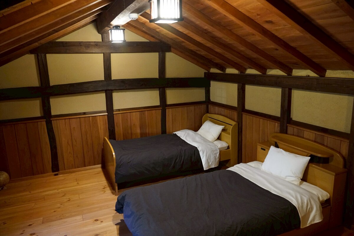 世界遺産の町並みで暮らしたい方へ。 Stay like a local and feel the timeless beauty of rural Japan! A traditional Japanese house with modern comfort — perfect for couples and slow travelers. Located in a peaceful UNESCO World Heritage town. Kitchen, washing machine, Wi-Fi, - ideal for longer stays. 石見銀山の麓、静かな大森町のにある築100年の古民家を、まるごと一棟貸しでご利用いただけます。 木の梁や土壁など当時の趣をそのまま残しつつ、快適に滞在できるよう丁寧にリノベーションしました。 日本の古き良き暮らしを感じたい外国人旅行者にぴったり。2台のベッドとお布団で最大3〜4名まで宿泊可能。 短期から長期滞在まで快適にお過ごしいただけます。 町歩きやカフェ巡り、夜は星空を眺めながら、穏やかな時間をお楽しみください。