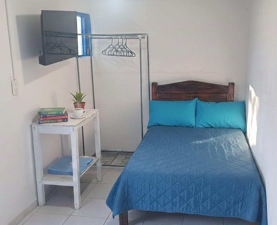 Helt ny og superudstyret suite med mikrobølgeovn, blender, kaffemaskine, lille køleskab, induktionsgrill (valgfrit) og grundlæggende køkkenredskaber og grundlæggende køkkenredskaber; terrasse med lænestole, palapa med hængekøjer og kulgrill. Med et perfekt sted at tage til centrum eller ud i omgivelserne. Dagligvarebutik på den anden side af gaden, transport på hjørnet, restauranter, supermarked, banker, alle meget tæt på.