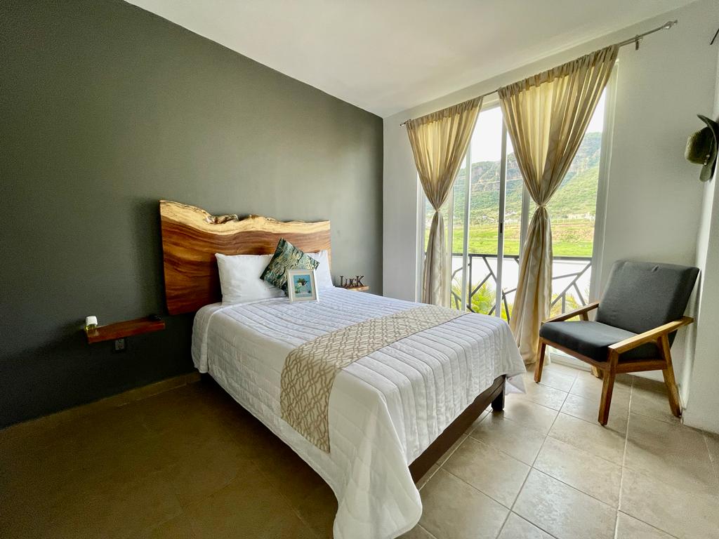 Hyggeligt værelse i en charmerende hytte kun få blokke fra centrum af Malinalco. Dette private rum har et komplet badeværelse inde i rummet, der sikrer komfort og privatliv. Adgang direkte fra haven, hvor du kan nyde en smuk udsigt over poolen og det frodige landskab, der omgiver den. Dette værelse er ideelt til afslapning og afbrydelse og tilbyder en rolig og hyggelig atmosfære, der er perfekt til en parferie.