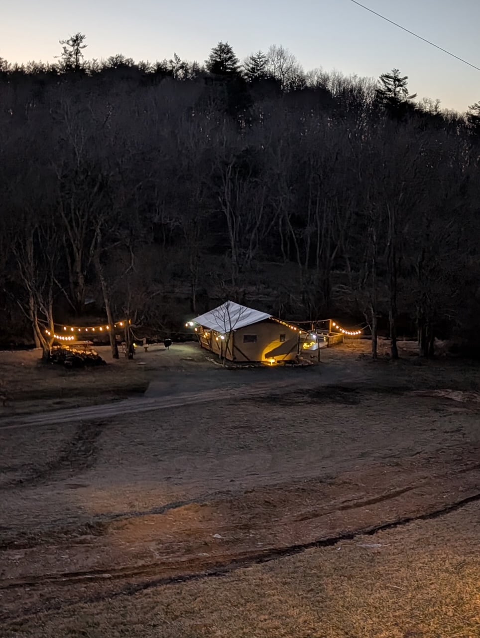 Come stay in our handcrafted glamping tent, built with traditional timber-frame joinery and wrapped in the beauty and whimsy of breathable cotton canvas. Breathe in. Draw near. Be still. Watch morning mist drift through the valley from your front porch. Take a nap as sunlight dances across the canvas. Soak in the sounds of birdsong and breeze while reading a good book. Nearby adventures: 15 min – Indian Mtn. Park 40 min – Norris Lake 45 min – Cumberland Falls 2 hr – Great Smoky Mtn. Ntl. Park