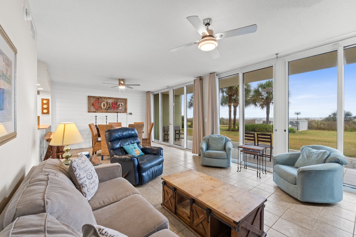 Så snart du kommer ind i vores lejlighed på 3. sal ved stranden, vil du efterlade alle dine bekymringer og slappe af, mens du nyder en direkte udsigt over Den Mexicanske Golf. Du kan gå til stranden lige ud af bygningen, ingen grund til at krydse nogen veje. Mange opdateringer blev foretaget i marts 2021: helt ny queen size sovesofa, helt nyt køleskab i rustfrit stål, komfur, opvaskemaskine og mikrobølgeovn, helt nye møbler, ny maling, nyt gulvbelægning og helt nye fjernsyn. Vi har Netflix og højhastigheds-WiFi.