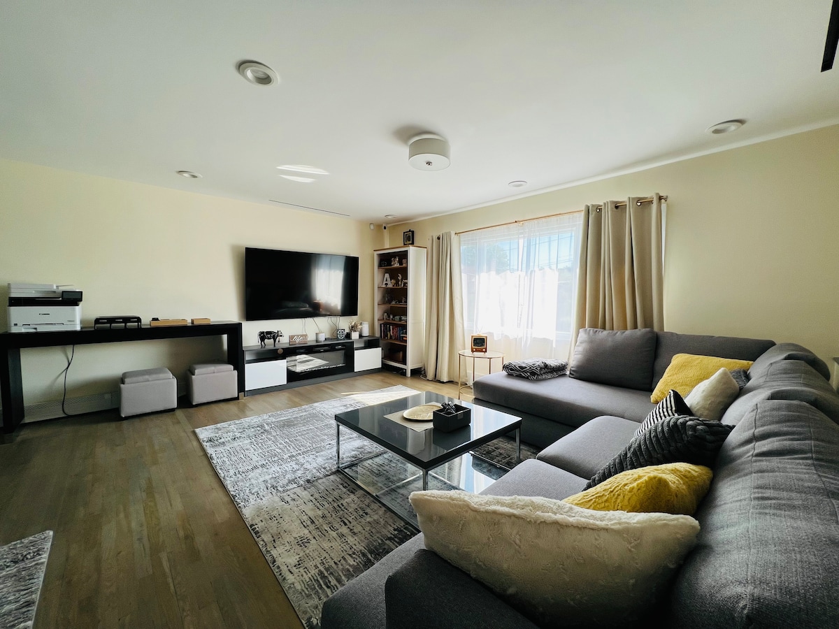Newly renovated private suite located in the basement with private entrance and bathroom. King size bed can accommodate 2 people. Smart light fixtures and Electric sofa recliner for extra comfort. Light refreshment area with microwave, fridge, mini toaster, electric kettle and Keurig. Close to Northwell hospital and 20 mins by foot to LIRR train station. 10 minutes driving to all supermarkets, shops, library and Stepping Stone Park. Host is highly allergic to cats and dogs. No Pets Allowed!