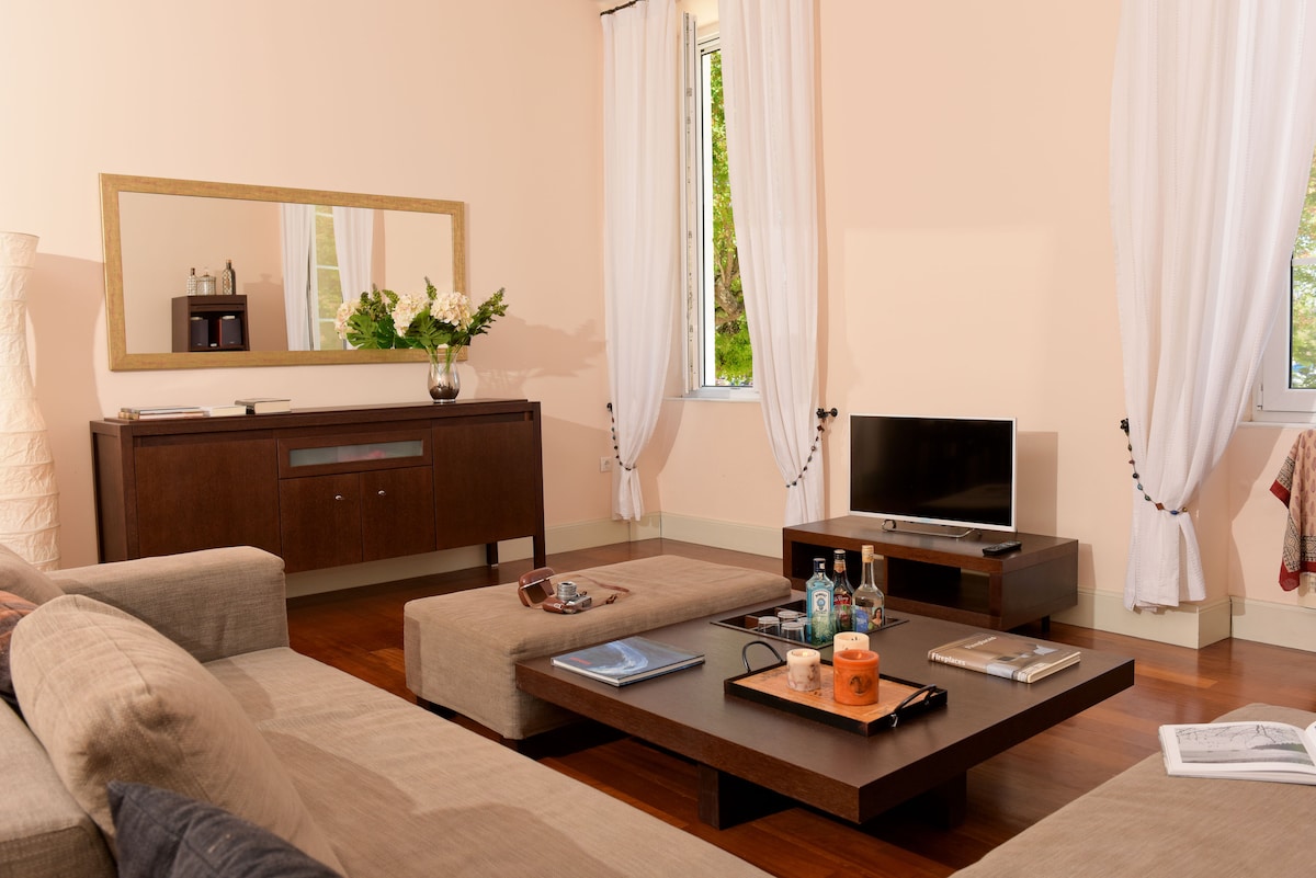 "Viaggio" er et af de få overlevende lavtliggende rækkehuse fra den venetianske periode i hele den historiske bymidte i Korfu. Beliggende i en malerisk gyde få skridt fra Spianada-pladsen, er alt, hvad den gamle bydel har at tilbyde, bogstaveligt talt lige uden for døren. Et hjem for generationer, der på innovativ vis er restaureret til et luksuriøst hjem for besøgende, der ønsker at opleve øen som lokale, uden at gå på kompromis med kvaliteten. Lejligheden ligger i stueetagen og 1. sal.