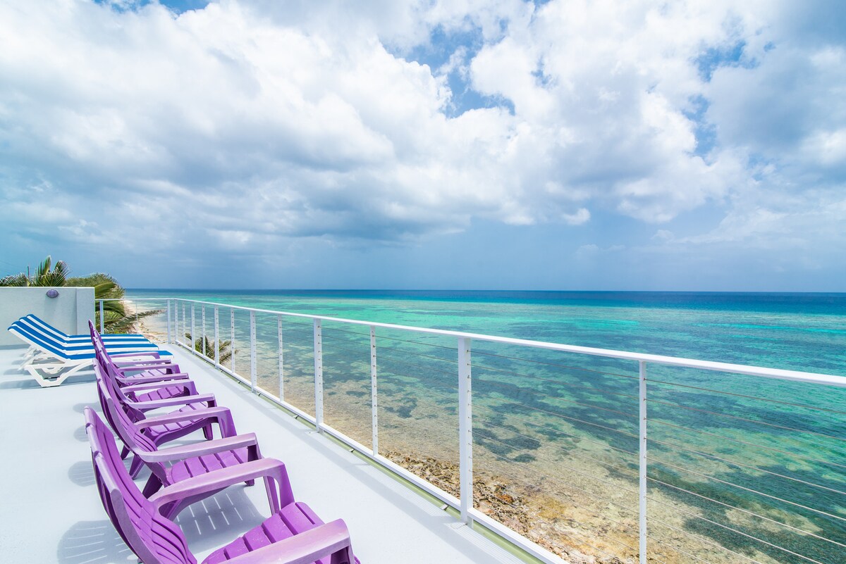 Private & Tranquil BEACHFRONT Cottage offers all the convenience of a luxury home. KAJAKKER og SNORKELUDSTYR, dagseng og smart-tv på den AFSKÆRMEDE VERANDA, strandstole, strandgynge og smukke SOLNEDGANGE. Der er hængekøjer i hele ejendommen. Moderne brusekabine, håndklæder og badekåbe. Fuldt køkken, Keurig og almindelig kaffemaskine og blender, ekstra stort soveværelse, caribisk antikseng med fire søjler, skrivebord + smart-tv. Nyd paradis og oplev "ægte caymansk gæstfrihed".
