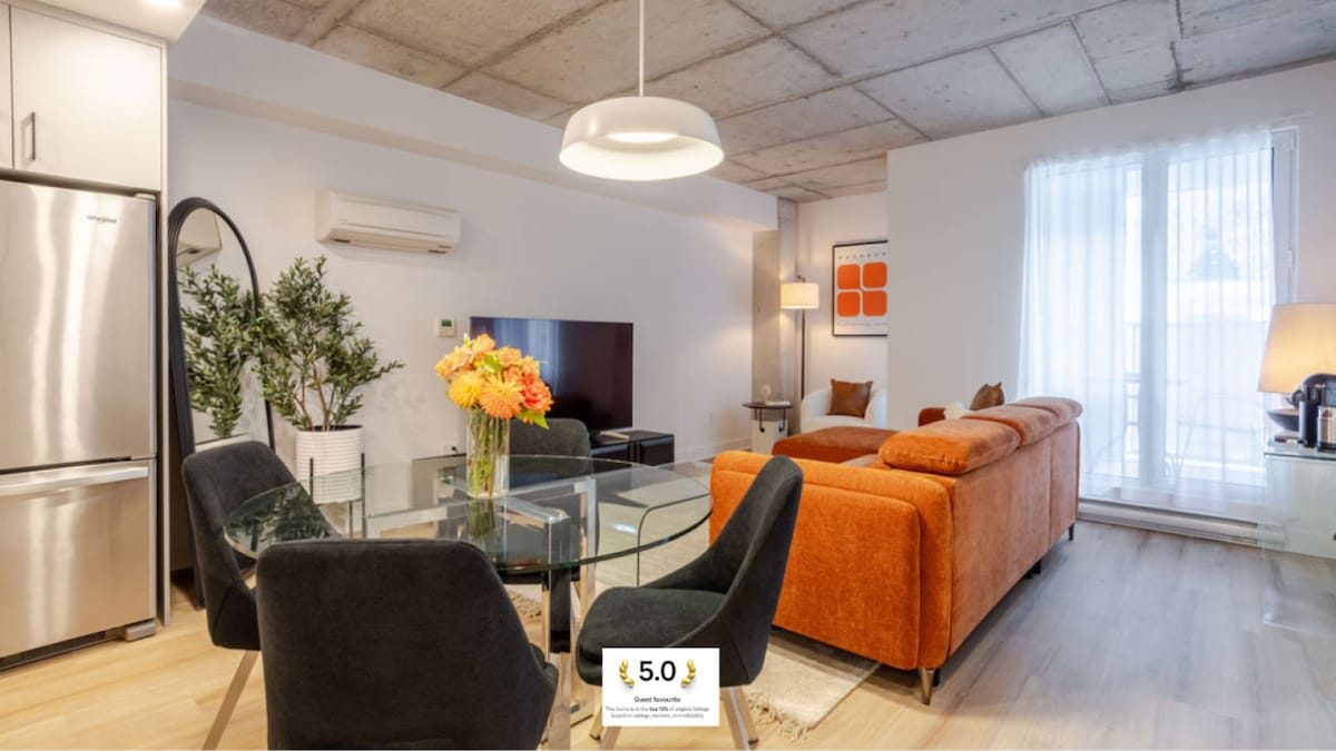 Vores omhyggeligt designede bolig med 1 soveværelse lover både komfort og bekvemmelighed. Denne stilfulde perle er skræddersyet til gæster, der søger en problemfri blanding af moderne faciliteter og gennemtænkt design Perfekt til at udforske eller arbejde i Montreal. Kun 7 minutters gang fra Frontenac Metro og 1 minuts gang fra det nærmeste busstoppested. Beliggende på tredje sal *Bemærk : Trappen er i øjeblikket under renovering, så de kan være lidt støvede, men du kan være sikker på, at de er sikre. CITQ-nummer: 317013.