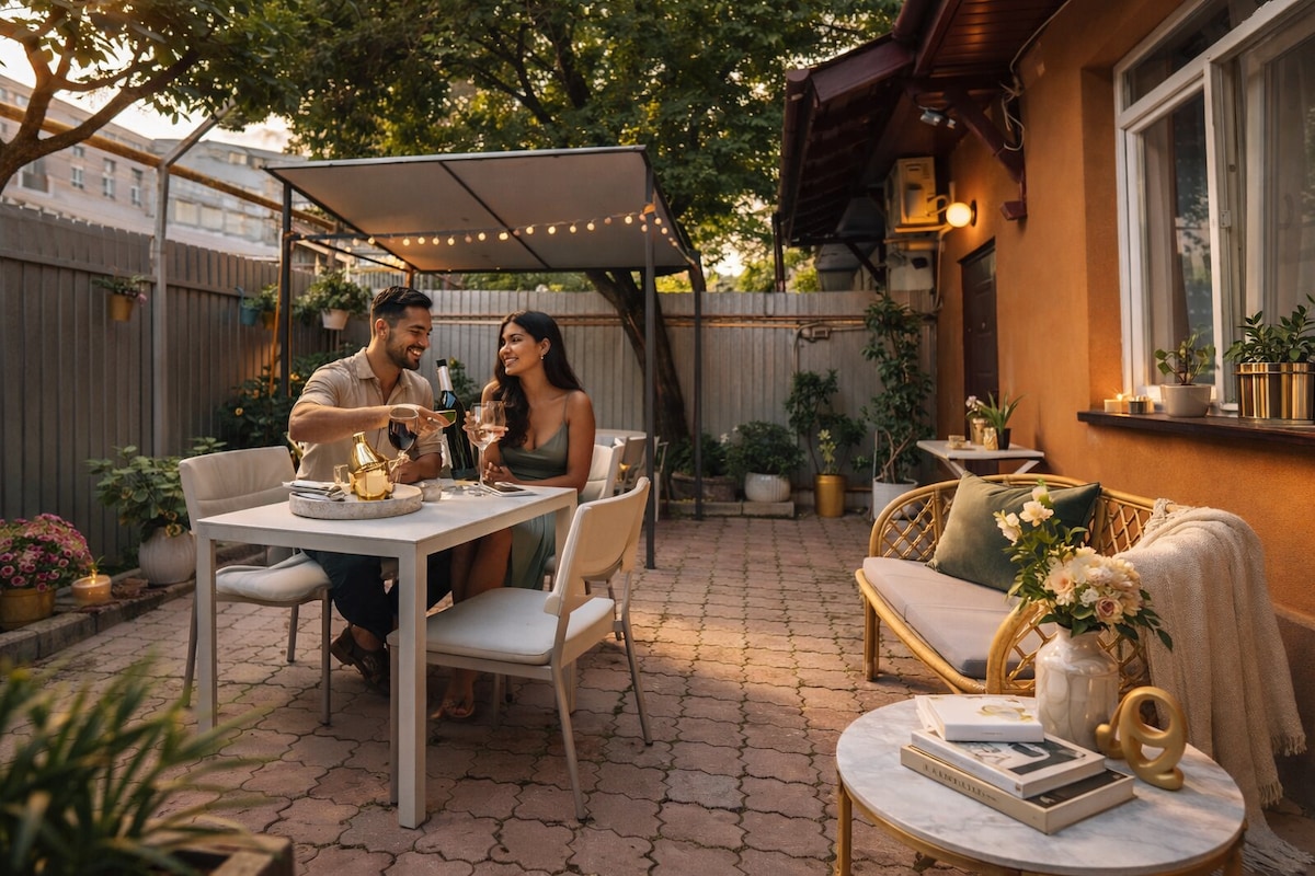 For alle jer rejsende derude er ved at booke en af de bedste lejligheder, Bukarest har at byde på. Vi er stolte af at præsentere dig for en topmoderne lejlighed med 2 soveværelser og 2 badeværelser med egen gårdhave, der ligger i en villa lige ved siden af den ikoniske Calea Victoriei boulevard. Hvis du leder efter en fantastisk, men rolig beliggenhed og topmoderne kvalitet, er dette stedet for dig.