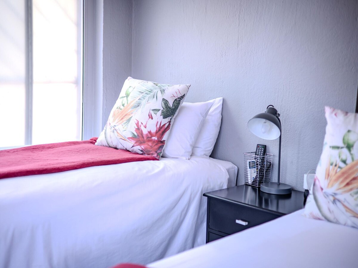 Privat luksuriøs lejlighed tilknyttet vores hjem. Den er udstyret med en queensize-dobbeltseng, tekøkken og aircondition. Tekøkkenet har komplet service, bestik, kedel, brødrister, induktionskomfur, mikrobølgeovn, luftfryder og et skjult barkøleskab. Badeværelset har et stort spa-lignende brusebad og et toilet med blød lukning. Gratis wi-fi og gratis adgang til Netflix, Prime Video og Showmax. Gæster kan logge ind på deres egen DSTV-konto.