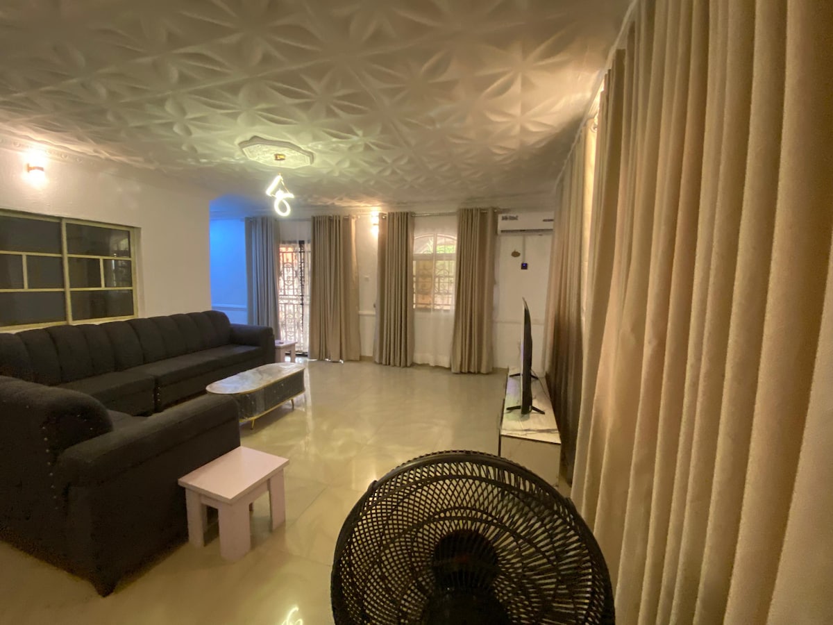 Et roligt og moderne hus med 2 senge ligger ved LAKESIDE GATE ALALUBOSA GRA i centrum af Ibadan. Alle tre soveværelser har aircondition og store kingsize-senge. Huset ligger 15 minutters kørsel fra University College Hospital, 18 minutter til det store University of Ibadan, 20 minutter til Polytechnic, 12 minutter fra Ibadan Golf Course. Beliggende i et fredeligt, roligt og lukket område. Huset har stærk elektricitet med standbygenerator, vandforsyning, 58 tommer Smart TV, 5G wi-fi. BOOK IKKE FOR 1 GÆST.