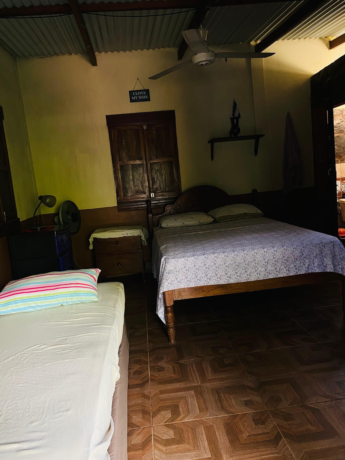 Disfrutá de una habitación amplia y muy cómoda ubicada en el segundo piso, justo frente a la playa Santo Domingo, una de las mejores y más tranquilas playas de la isla de Ometepe. La habitación tiene un estilo rústico y natural, con ventanas enormes que permiten excelente ventilación y una sensación fresca todo el día. Incluye un baño privado, perfecto para mayor privacidad y comodidad durante tu estancia.