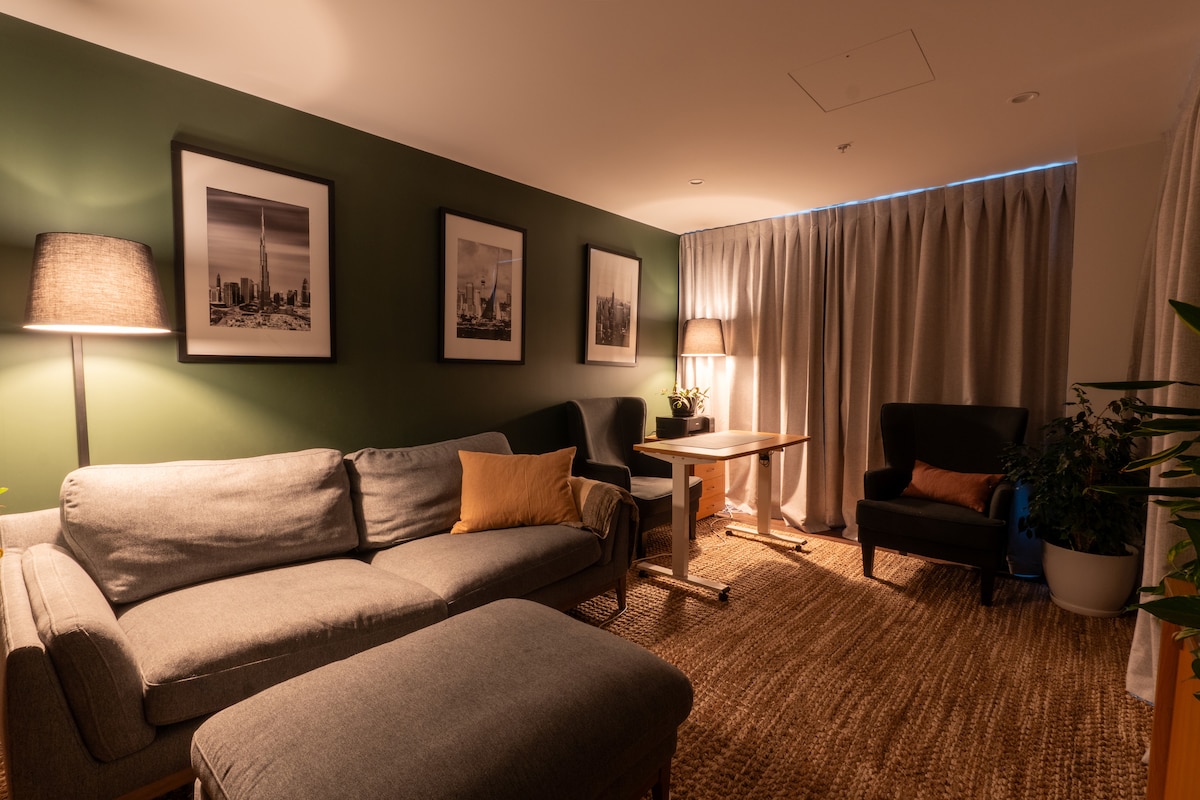 Hel gæstesuite, tæt på lufthavn og by