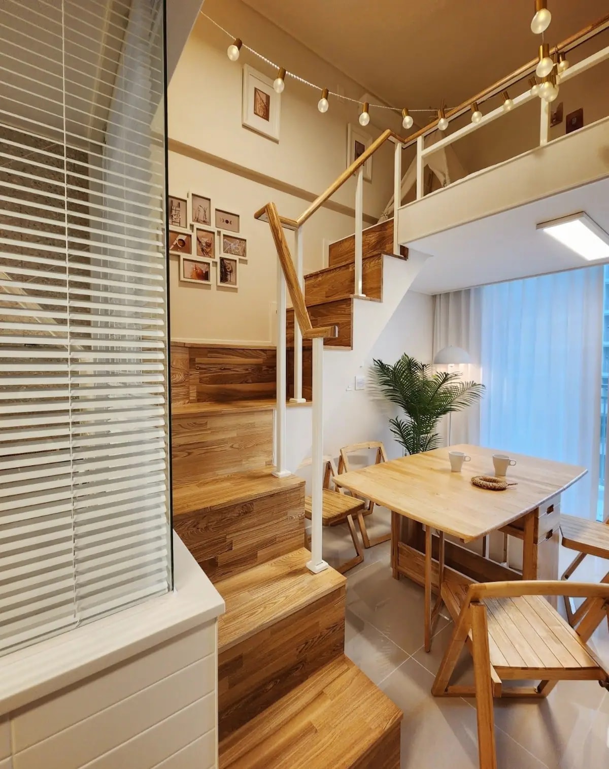 Det er et selvstændigt hus beliggende i Ganghwa-eup, Ganghwa-gun. Nabolagskulturen er levende, så det anbefales til dem, der ønsker at slappe af i ro og mag. Du bruger hele 2. sal som en privat lejlighed, og da det er en privat hoveddør, kan du bo privat uden at støde ind til ejerens hus. Der er træer i og omkring haven på stueetagen, så du kan høre fuglene synge under dit ophold. Du kan gå rundt i Ganghwa-eup, besøge kulturelle steder, restauranter, berømte caféer (som Joyang Bansik) og bestille mad. På den store balkon på 2. sal kan du også grille med luksus trækul. (Vi kan forberede det, hvis du bestiller på forhånd.) Boligen er opdelt i et soveværelse + stue + køkken + toilet, og badeværelset har et stort badekar, så du kan tage et varmt bad. Kingsize seng og luftmadras garanterer en god nats søvn. I stuen er der et tv, hvor du kan se film på YouTube og Netflix.