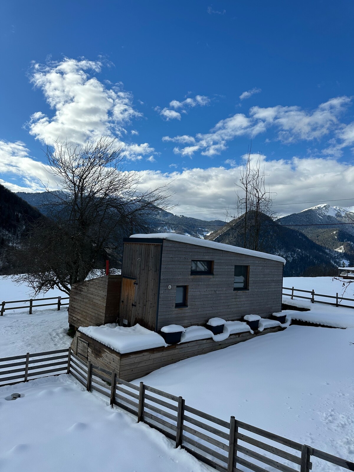 MINIHUS med terrasse med bjergudsigt For et par eller en familie sovesofa til 1 eller 2 børn. At Domaine du Solayan, kom og nyd wellnessområdet: 15 € for indgangen Fra hans restaurant ( reservation er påkrævet ): 27 € per enkelt voksenmenu Skal bookes på bookingtidspunktet Der er sengetøj Valgfrie håndklæder 5 € Køleskab - Tallerkener - Mikrobølgeovn Kedel - Nespresso Vandreafrejse Le Mourtis Station: 12 km
