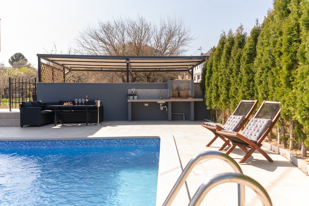 Velkommen til vores villa med en privat opvarmet swimmingpool på landet i Istrien, ideel til familier eller grupper af venner på op til 6 personer. Huset ligger i en lille landsby omgivet af olivenlunde og vinmarker og ligger kun 5-10 minutter fra flere strande. Strategisk beliggende for at besøge kystbyer som Novigrad, Umag og Poreč samt charmerende landsbyer som Buje, Brtonigla og Grožnjan. Istralandia Aquapark ligger kun få minutter væk. Book nu for en uforglemmelig ferie!