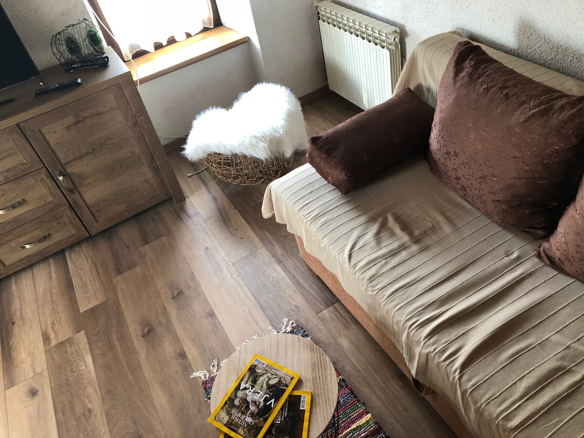 Dette feriehus er omgivet af skov og grønne områder og tilbyder alt, hvad du behøver for at komme væk fra hverdagen. En rummelig terrasse med en betagende udsigt over de omkringliggende bjerge er det perfekte sted til en morgenkaffe eller en aften i jacuzzien under stjernerne. Om vinteren er alt dækket af sne, og ski- og slædebakkerne er lige rundt om hjørnet. Her hersker fred, frisk bjergluft og stilhed – ideelt til at genoplade og nyde naturens rytme.