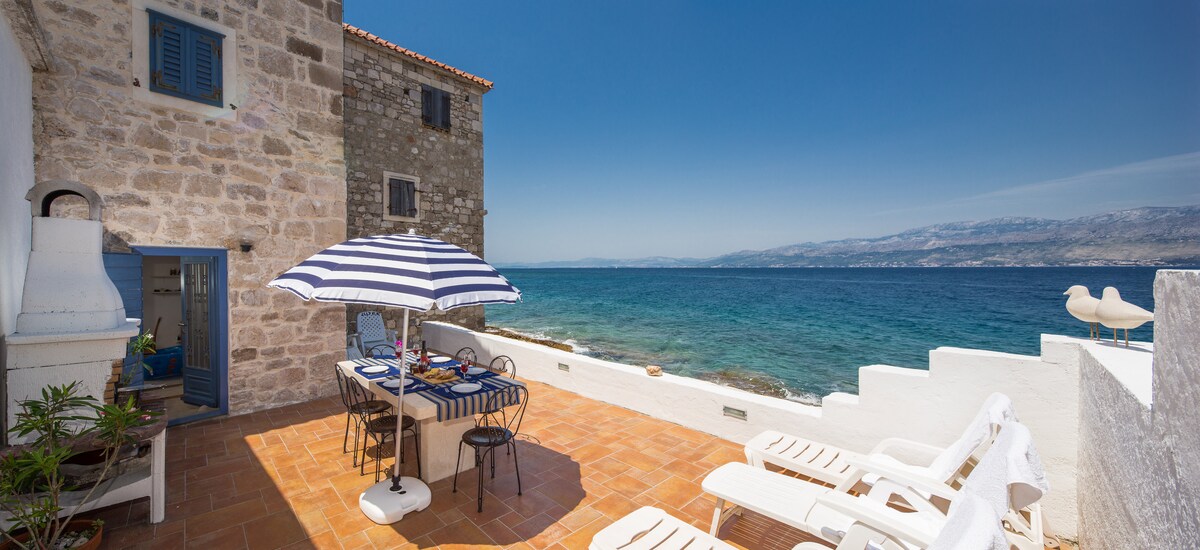 Stenhus ved havet Et nyt smukt stenhus i den lille landsby Postira er ideelt til din ferie. På havnefronten, ved havet er der en strand, en café, en restaurant og et pizzeria. Alt er inden for 30 meter. Nyd havet, solen og den smukke natur. Der er de mest romantiske solnedgange på øen. Slap af.. Efter at have nydt havet om aftenen, kan du besøge det rige natprogram på havnefronten. Der finder du hjemmelavede slik, livemusik, ø-produkter ..
