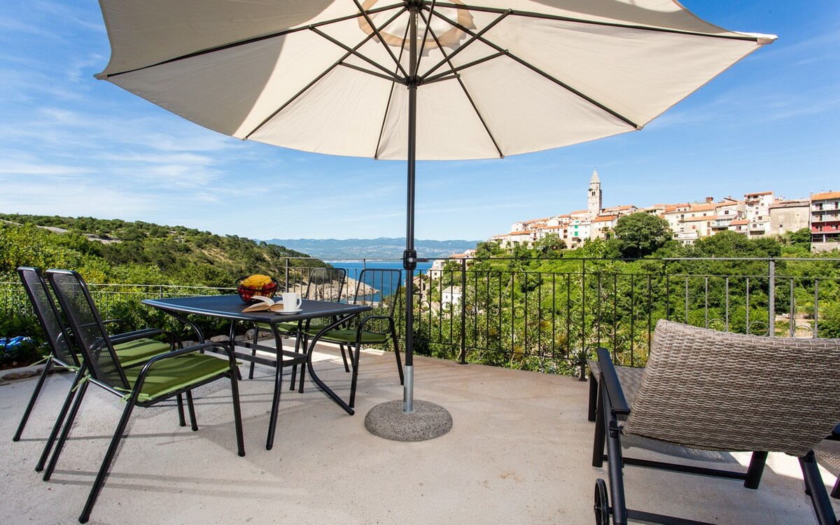 Spend a relaxing holiday in beautiful atmosphere in idyllic village of Vrbnik. The charming apartment with airy interiors and romantic details will enchant you immediately. Right at the entrance there is a small balkony and the other with sea view is in front of the bedroom. The first beaches are within walking distance. Taste the traditional dry white wine "Vrbnička žlahtina" and many specialties on the island of Krk . APP has a separate entrance.