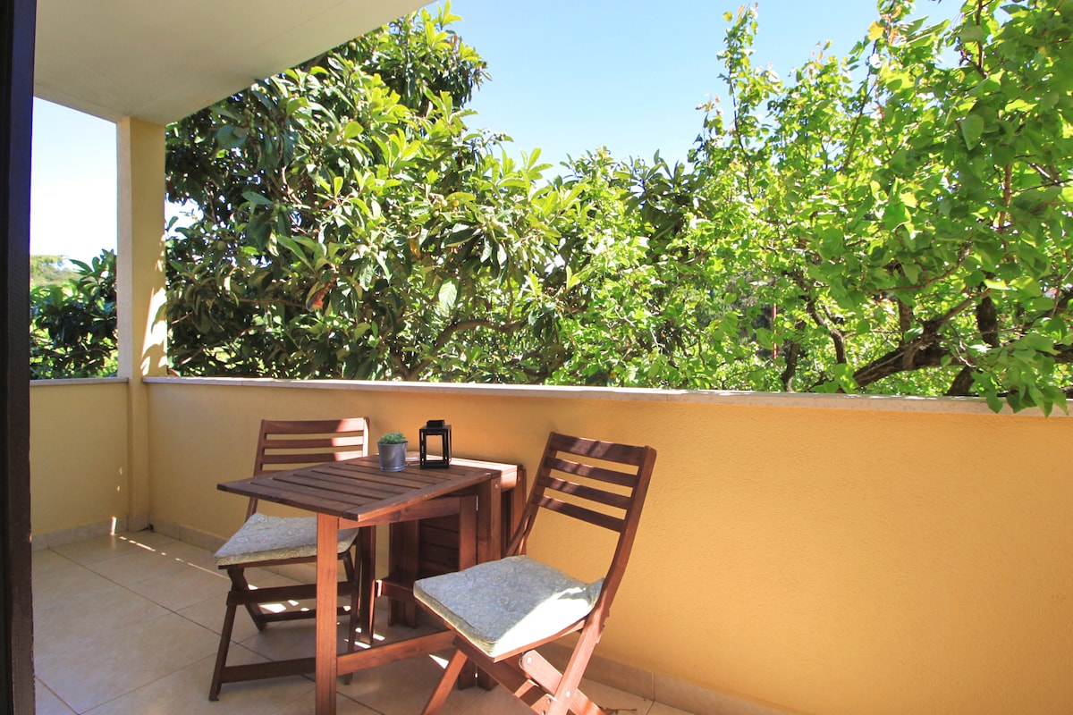 One bedroom apartment surrounded by a Mediterranean garden. Walk to the beach and to the Old Town of Vrsar, to see the beautiful viewpoints and experience local scenery at the main town square. Enjoy the terrace and pick some herbs in our Mediterranean garden.