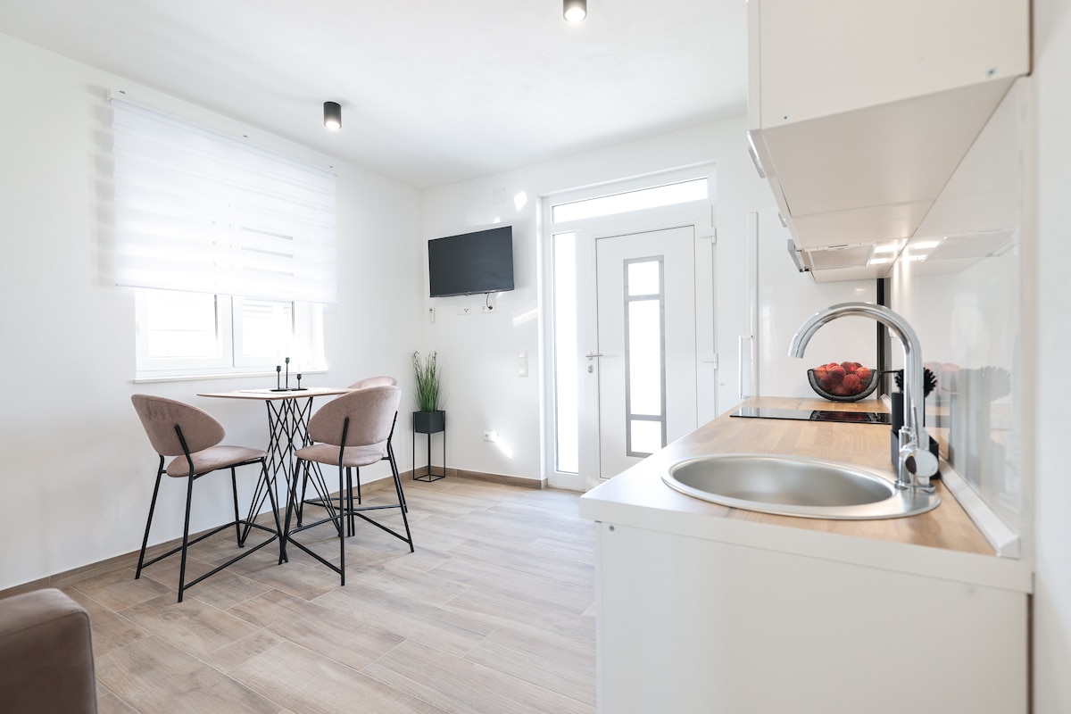 Enværelseslejlighed beliggende i et familiehus. Den består af et soveværelse, badeværelse, køkken, stue og balkon med udsigt over haven. Køkkenet er udstyret med komfur, køleskab, ovn, vandkoger og brødrister. Der er også alt service, hårtørrer, vaskemaskine, håndklæder, sengetøj... Gratis Wi-Fi og parkering. Ejendommen ligger 5,5 km fra byen Zadar og 10,5 km fra lufthavnen Zemunik. I nærheden findes restauranten Fortuna, caféen Lav, Metro, Studenac, tankstation ...