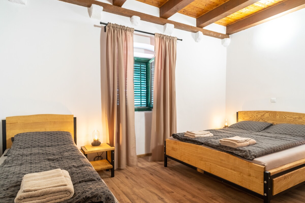 Lejligheden har to soveværelser, en spisestue forbundet til køkkenet og et badeværelse. Huset er en arv bygget i det 17. århundrede med udsigt over Mlini-havnen og stranden. Den kommer med en kæmpe have med citron- og appelsintræer, druekoner og figentræer og har også udendørs grill og pejs. Landsbyens næstældste træ kan findes i haven, der er 200 år gammelt. Vigtige oplysninger: huset er KUN TILGÆNGELIGT via TRAPPER, og vi HAR IKKE PARKERING