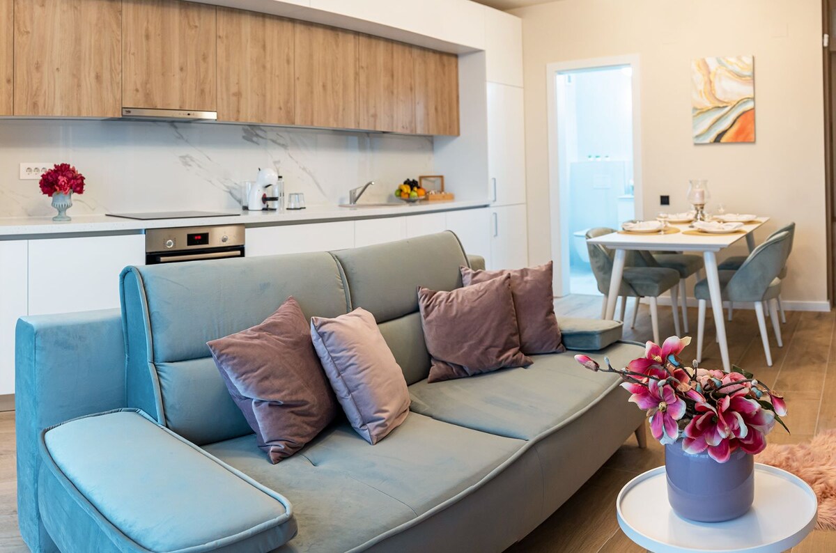 Lejligheden ligger i en ny boligbygning i nærheden af Prima-butikker og Lotus-indkøbscenter, hvor du kan finde mange restauranter og butikker. Inde i lejligheden er alt helt nyt, fra moderne specialmøbler til håndklæder, sengetøj, madras, apparater og alt, hvad køkkenet er udstyret med. Du kan nyde en lækker kop kaffe eller te. Vi har central gulvvarme og aircondition. Indtjekning uden vært efter kl. 14.00 Kapaciteten er til 3 personer Gratis parkeringsplads.