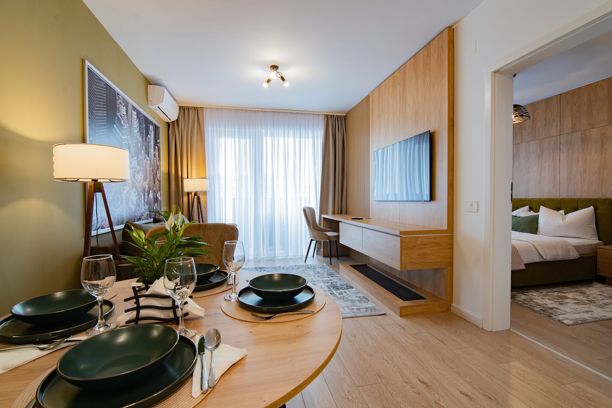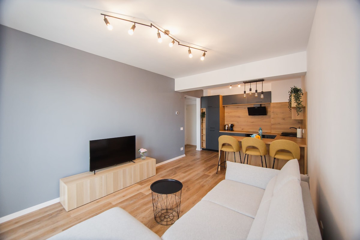 Velkommen til Riverside Retreat, en afslapningsoase beliggende i Prima-kvarteret i Oradea i nærheden af universitetet. Denne lejlighed tilbyder en komfortabel indkvarteringsoplevelse, der er ideel for dem, der ønsker at nyde skønheden og roen. Det fuldt udstyrede køkken giver dig mulighed for at lave dine egne måltider, og stuen er perfekt til afslapning. Riverside Retreat inviterer dig til at slappe af og nyde livets fredelige charme.