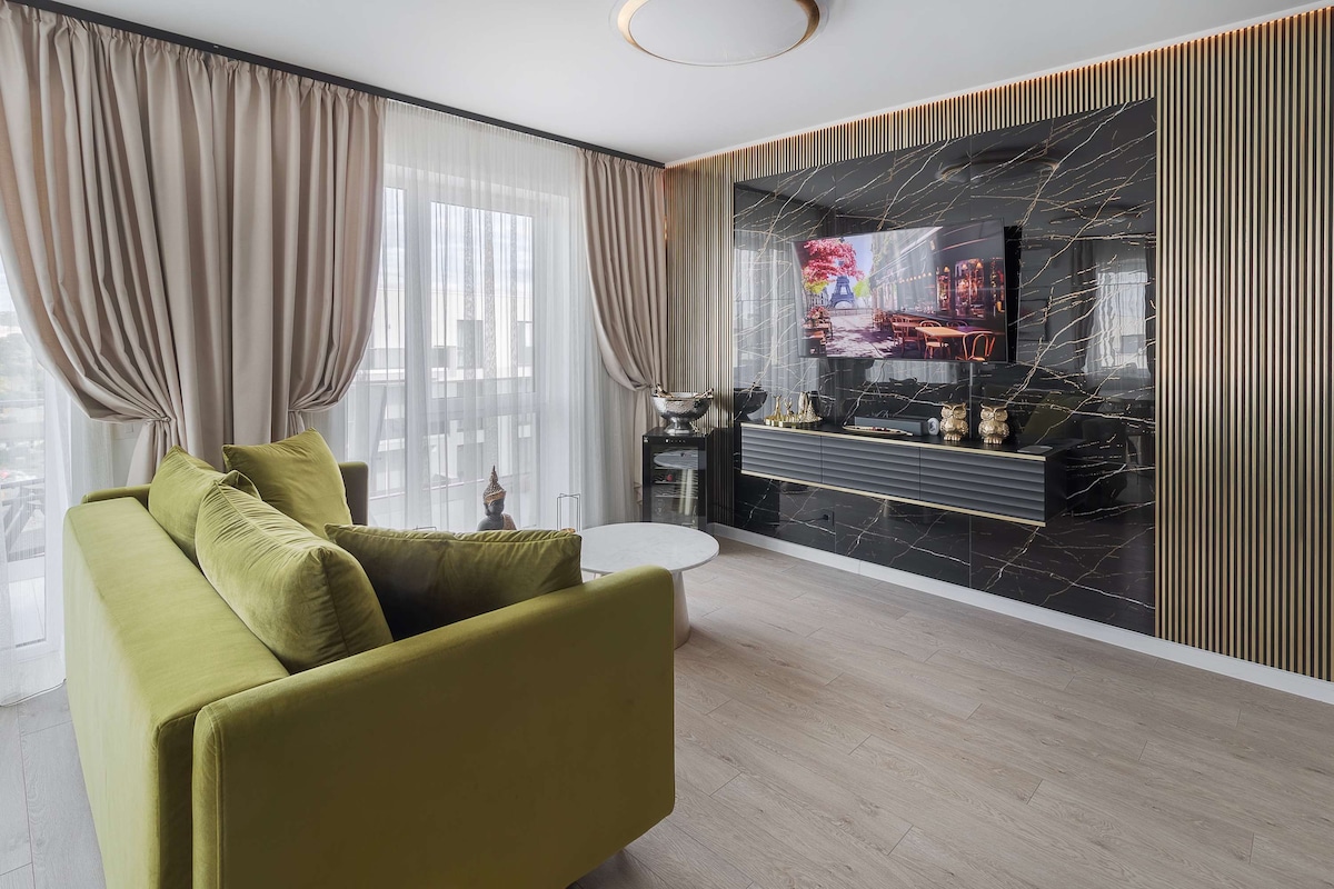 Oplev raffinementet i en luksuslejlighed, ny, tænkt til din absolutte komfort beliggende i Prima Arena-komplekset. Boligen tilbyder et soveværelse og en åben stue med fuldt udstyret køkken, perfekt til korte eller længerevarende ophold. Badeværelset er udstyret med et badekar, der er ideelt til afslappende øjeblikke, og balkonen tilbyder dig et roligt hjørne til din morgenkaffe.