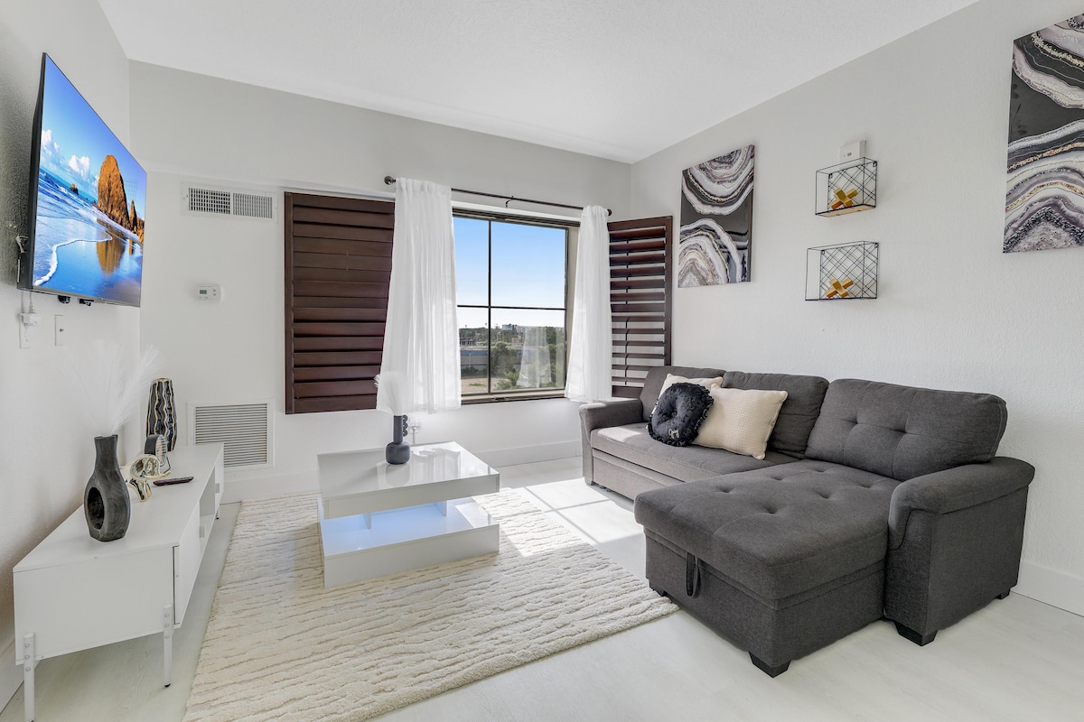 Suite med kingsize-dobbeltseng nær Epic og Universal, gratis parkering