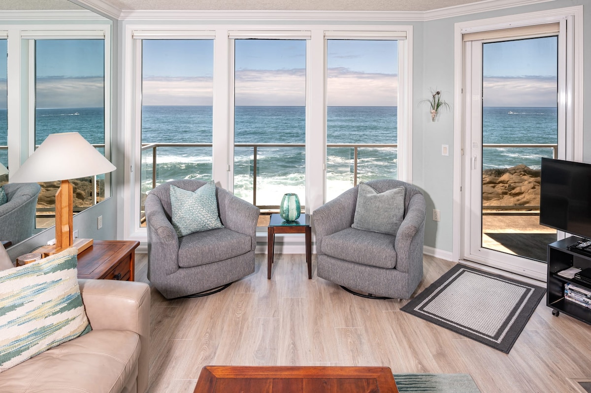 Slap af i en luksuslejlighed ved havet i naturskønne Depoe Bay Oregon, Whale Watching Capital i USA. Nyd dit hjem med to soveværelser og to badeværelser samt adgang til det private klubhus, indendørs swimmingpool, boblebad, fitnesscenter, teater og spillerum. Se hvaler, både og inspirerende solnedgange fra komforten i din stue og terrasse. Nyd legendariske restauranter, butikker , golf, fiskeri og hvalsafari i nærheden. Fogarty Creek State Recreation-området og stranden ligger en kort køretur nordpå.