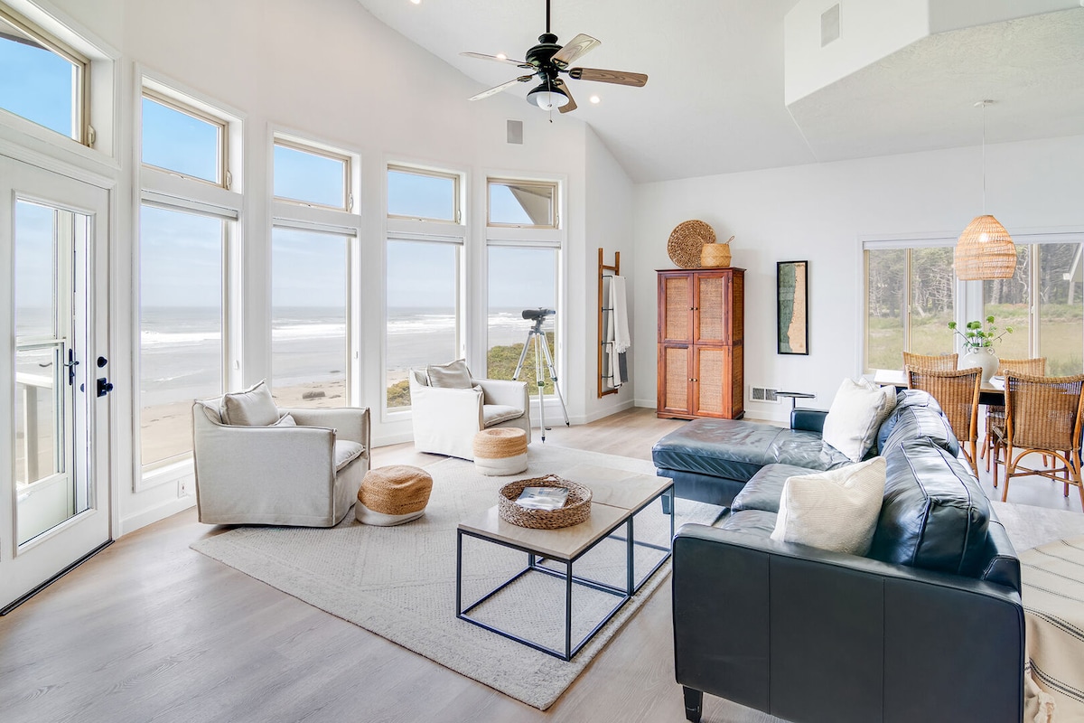 Neptune's Hideaway er en ægte perle ved kysten. Vinduer fra gulv til loft indrammer en betagende udsigt over Stillehavet, og vintagedesignet fremkalder varmen i et klassisk strandhus. Med indbydende rum og en afslappet atmosfære er dette hjem perfekt til afslappede sammenkomster med familie og venner. Alle udendørsområder inviterer dig til at nyde den spektakulære udsigt. Og det allerbedste ved det? Du er kun få minutter fra golf, et resort-spa og fantastiske spisesteder. Tag børn, hunde og venner med – det er tid til at slappe af.