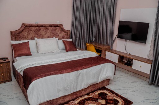 En eksklusiv fuldt møbleret minilejlighed (etværelses lejlighed) Serviceret lejlighed med alle faciliteter for at gøre dit ophold mest behageligt, beliggende i en centralt beliggende position, der er sikret og fredelig, eksklusiv på mange måder, den ligger inde i NNPC Estate, som er kendt for garanteret uafbrudt strømforsyning og sikkerhed i hjertet af Warri by. Beliggende på Number 5 Anambra Close, Off Refinery Drive, NNPC Complex Road, Off Airport Road, Edjeba, Warri-Ekpan, Delta State, Nigeria