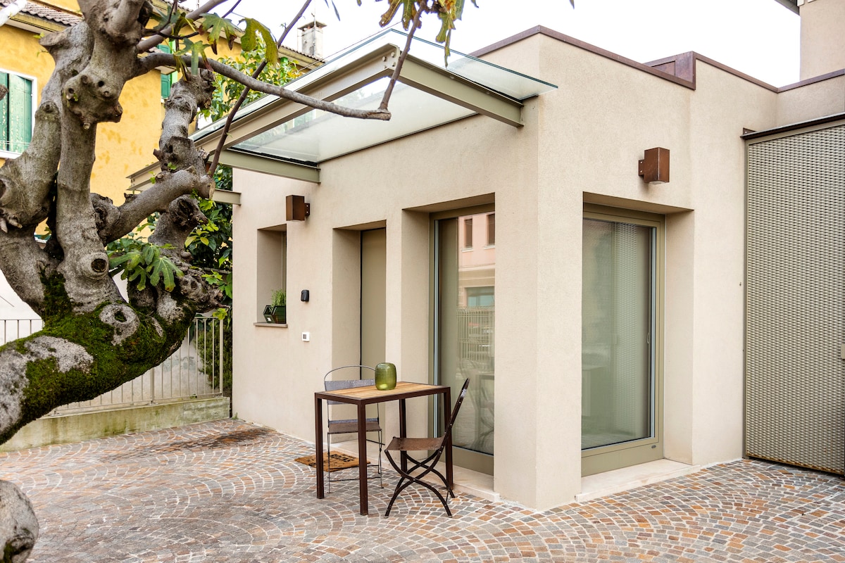 I nærheden af motorvej A4 og busstoppestedet, der kører til Venedig og Padua på mindre end 30 minutter. I centrum, lys, enkel og elegant. Med udsigt over floden med smuk udsigt. Den er udstyret med al komfort, gratis wi-fi, smart-tv, mikrobølgeovn, køleskab, Nespresso-kaffemaskine, aircondition, vaskemaskine/tørretumbler, sikkerhedsboks. Vi er partnere med en strandklub 1,5 km væk med gratis brug af pool for vores gæster. Poolen er åben fra 1. juni 2025 til søndag 1. september 2025. Lukket i tilfælde af dårligt vejr.