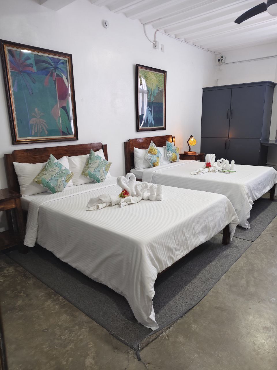 Our 'Family' room is on 2nd floor of our hotel. It has 4 sets of bunk beds (double deckers as they get called here) as well as its own bathroom. Its only two minutes walk to the beach where there are showers, CR and non motorised watersports.