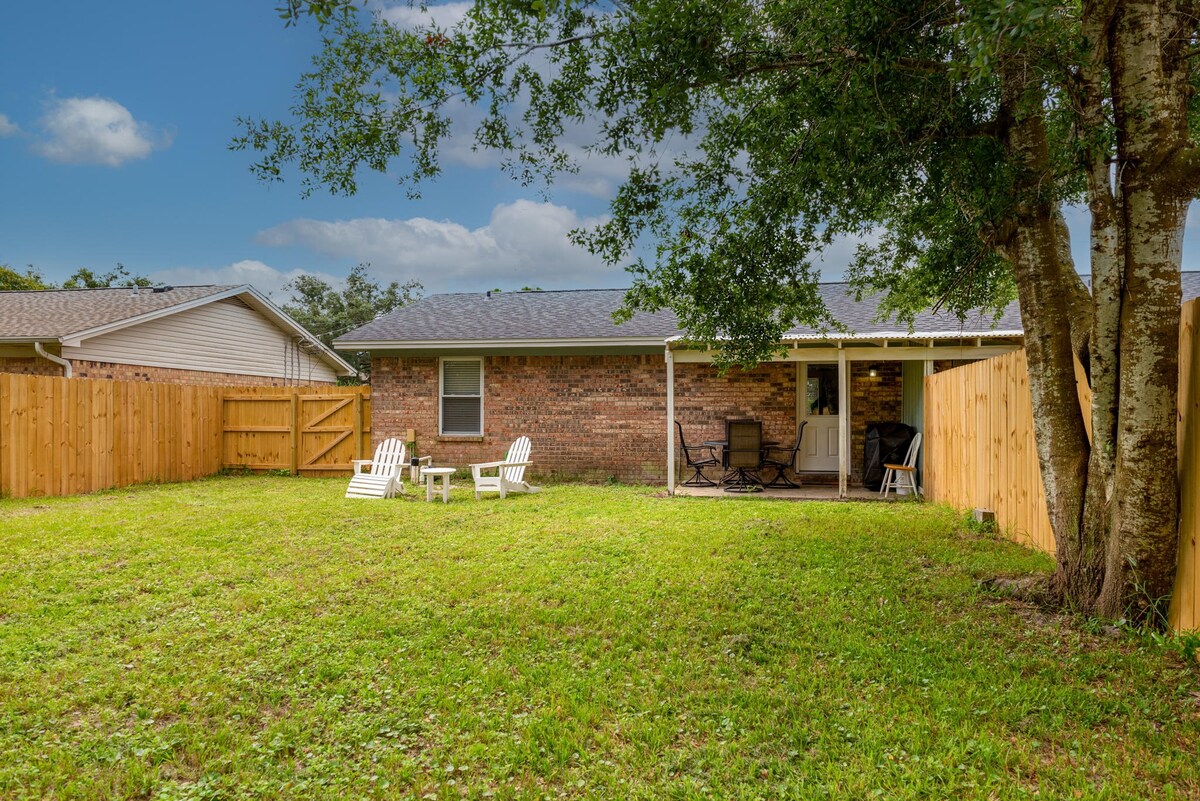 Velkommen til Villaen! Moderne og nyrenoveret 2 soveværelser 2 badeværelser (6 gæster) Bolig beliggende i hjertet af Gulf Breeze! Centralt beliggende i nærheden af det smukke hvide sand på Pensacola Beach (3 miles) og shopping i Gulf Breeze. Nyd et fredeligt ophold med en privat baggård med udendørs siddepladser og lys designet til sommeraftener. Velkommen til vores hyggelige feriebolig med helt nye køkkenapparater og en fuldt udstyret kaffebar. Vi glæder os til at være vært for din ferie! - Sonya