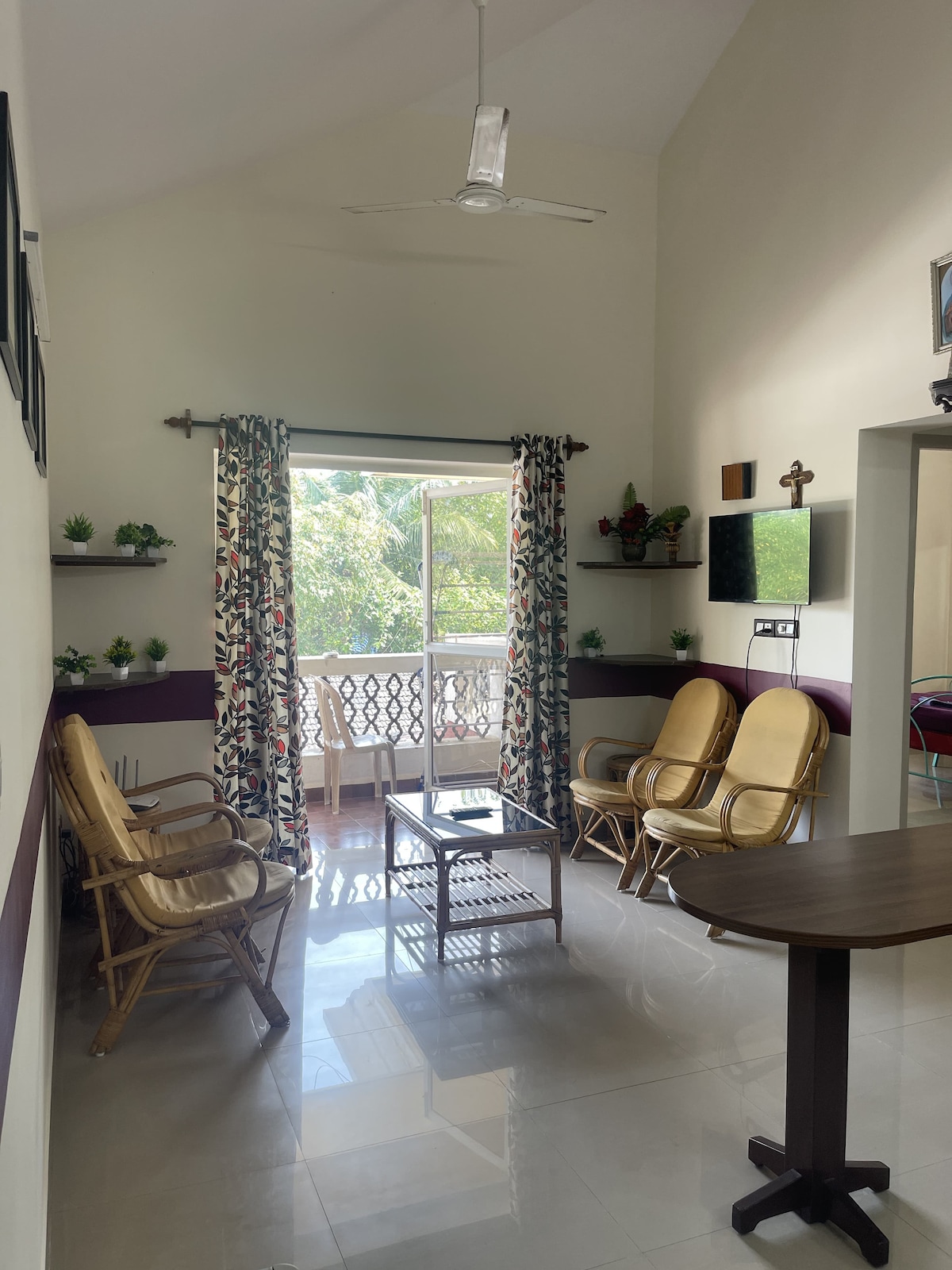 Leder du efter kvalitetstid, ro eller forbindelse? Vores sted henvender sig til familier, par og solorejsende med gennemtænkt design og lokal charme. Undslip kaosset, og slap af i vores fredfyldte 2 BHK Bohemian retreat, kun få øjeblikke fra Varca Beach. Denne smukt indrettede lejlighed blander hjemlig komfort med resortlignende charme, der er perfekt til en fredfyldt ferie eller en inspirerende ophold. 5 minutters kørsel til stranden. Fuldt møbleret med hyggelig, levende indretning Dedikeret arbejdsplads og højhastigheds-wi-fi.