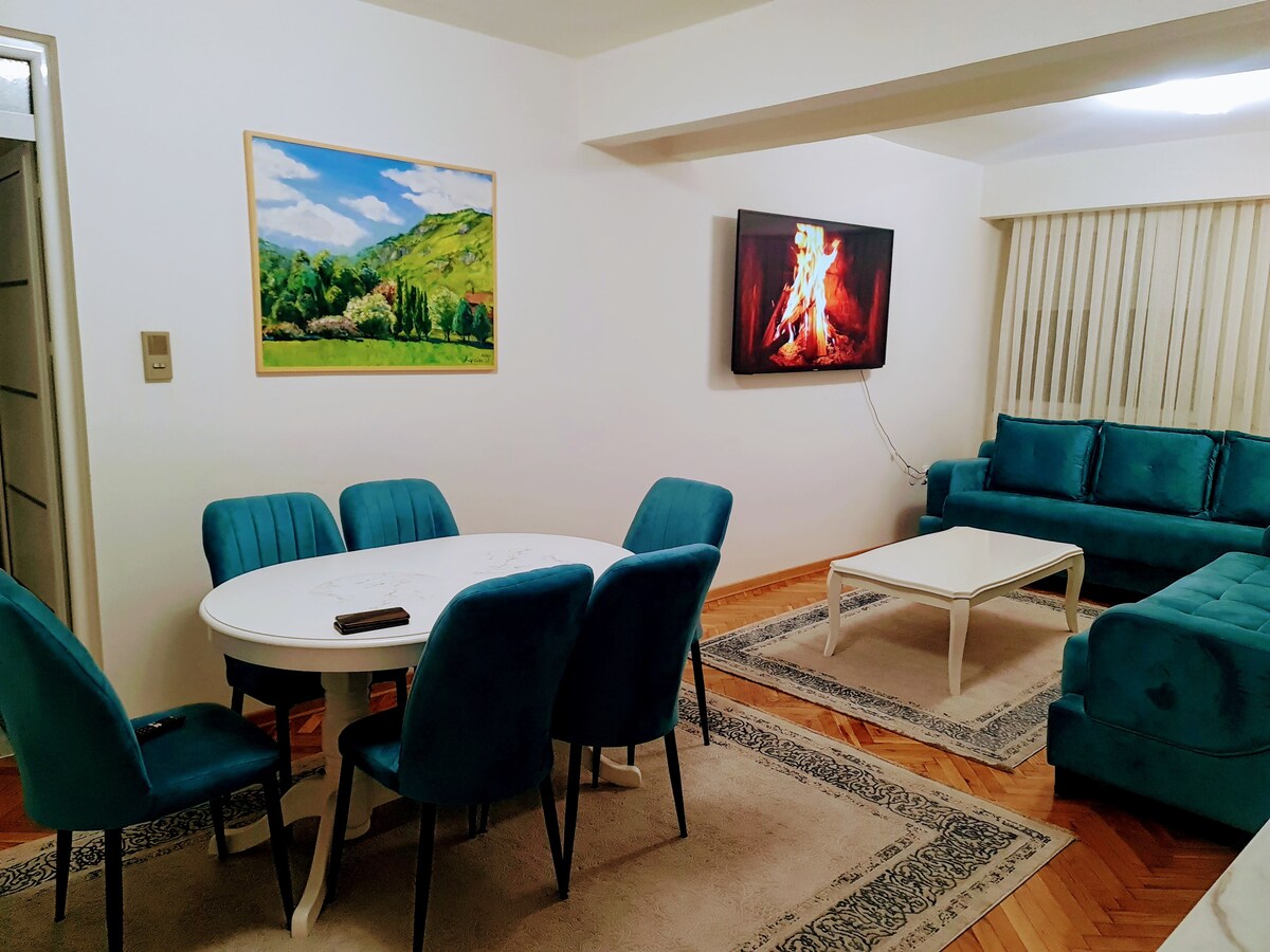 Ovaj elegantni smeštaj savršen je za grupna putovanja.Potpuno opremljen apartman sa 2 spavaće sobe ,kupatilom ,dnevnim boravkom, kuhinjom i terasom . Porodične sobe ... Na raspolaganju besplatan parking, Ima fantastičan pogled na ceo grad udaljenost od glavne magistrale 300m a od centra grada oko 2km . Marketi i pekare su u blizini 300m . Robna pijaca se nalazi na 1km od nas . Restoran na 600m
